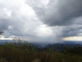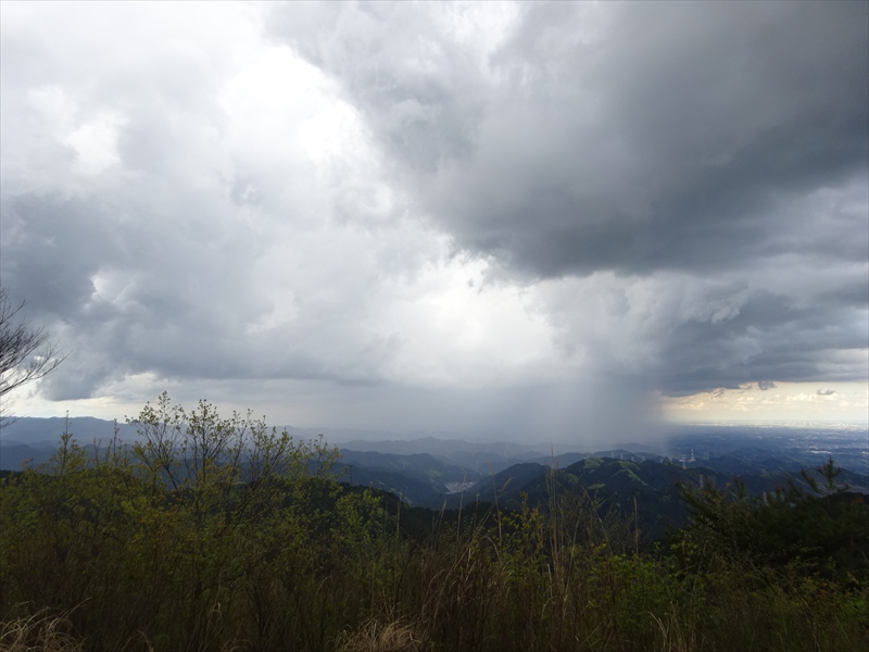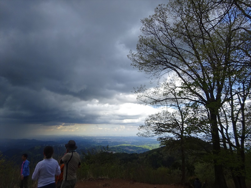 ようやく、岩茸石山山頂に到着、東の空の黒い雲にビックリ