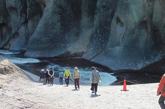 JR上越新幹線 上毛高原駅(9:20)下車 バス=名胡桃「なぐるみ」城址(9:38~10:00)=迦葉山「かしょうざん」(10:45~11:05)=玉原高原中央広場昼食・玉原湿原散策(11:30~13:00)=なめこセンター=吹割渓谷遊歩道(14:15~15:00)=こしもと旅館泊
