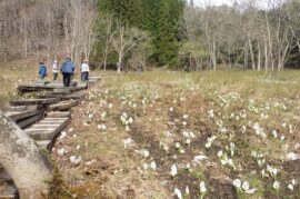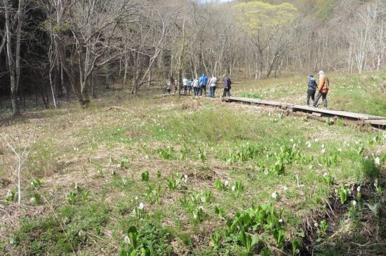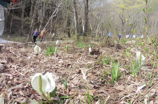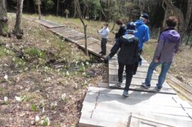 こしもと旅館(8:45)=越本ミズバショウの里(8:50~9:50)=針山の天王桜(10:30~10:50)=土田酒造見学(11:18~11:55)=川場田園プラザ(12:00~13:30)昼食=沼田駅=上毛高原駅(14:24発~)
