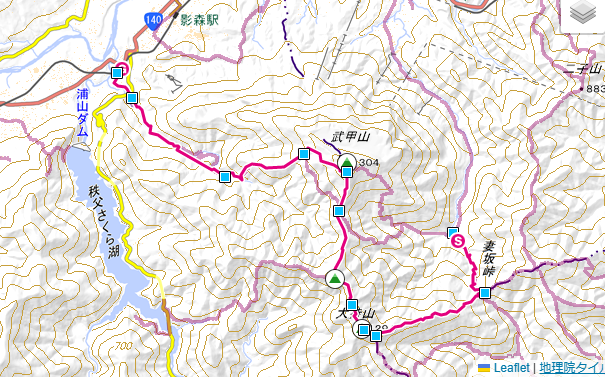 林道15:30-浦山口駅16:15 実歩程時間:6:30 休憩1:05 距離12.8㎞