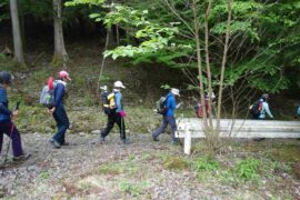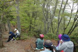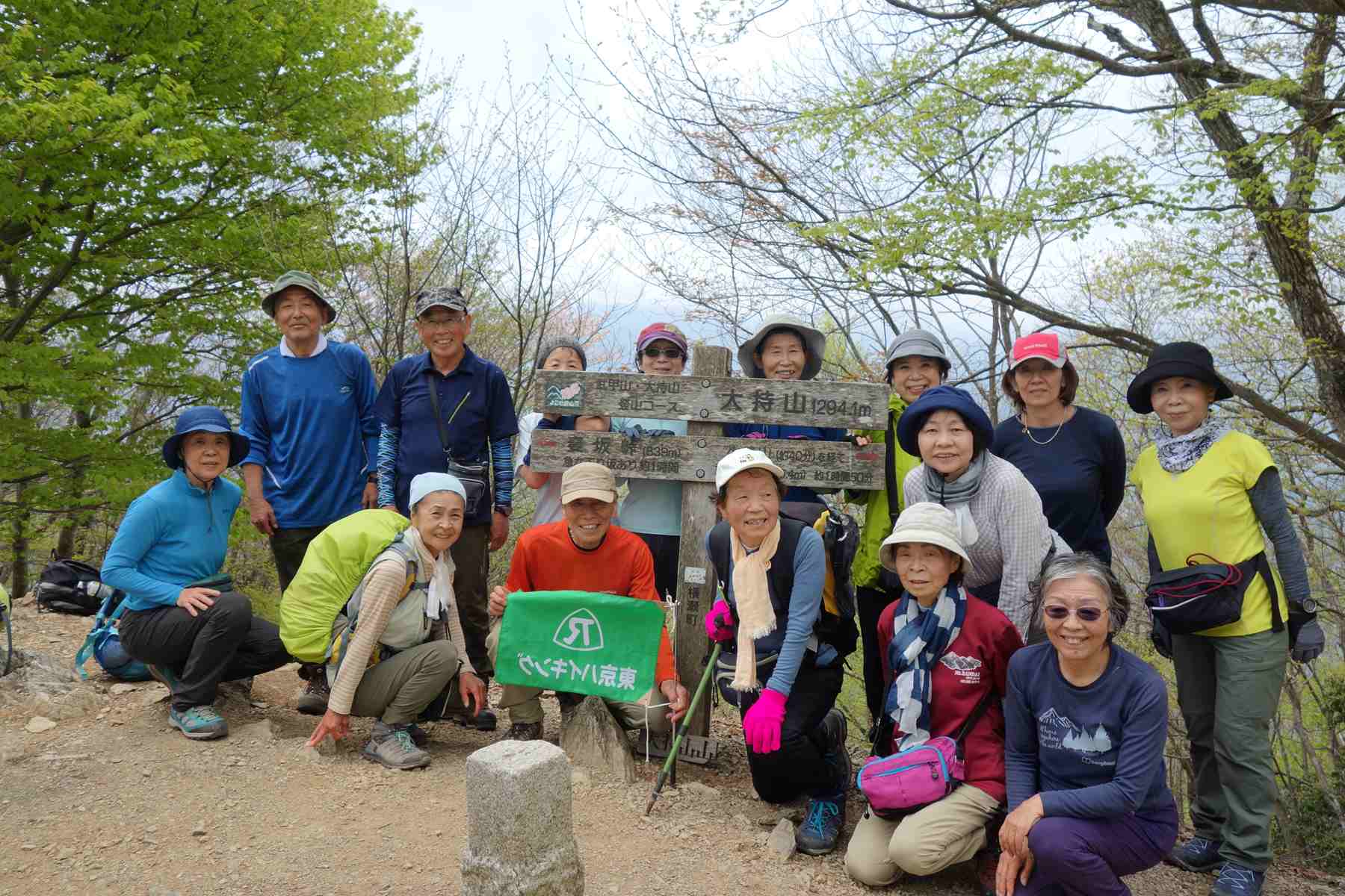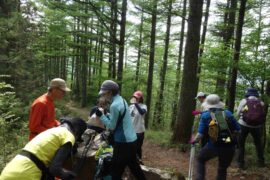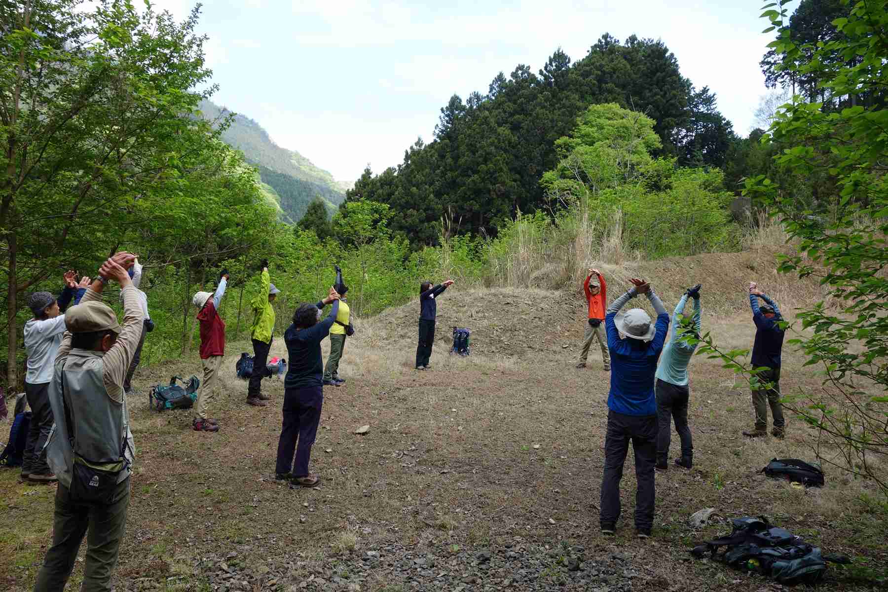 50台程車があふれていました。今日はロングコースなので、入念にストレッチ体操をし登山開始しました。妻坂峠~大持山までの急登をブナ林の新緑の力も借り、皆さん順調に登り切りました。
