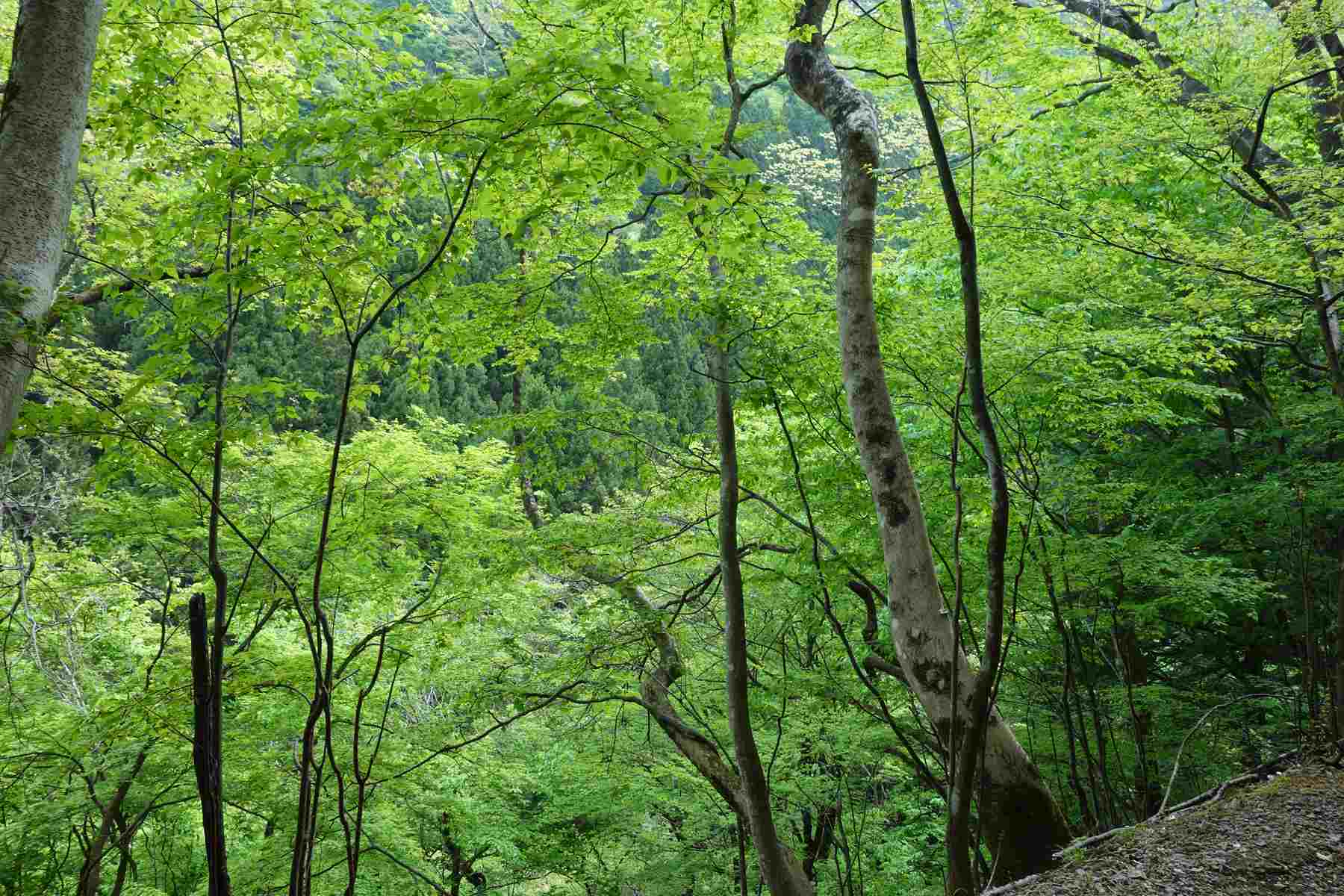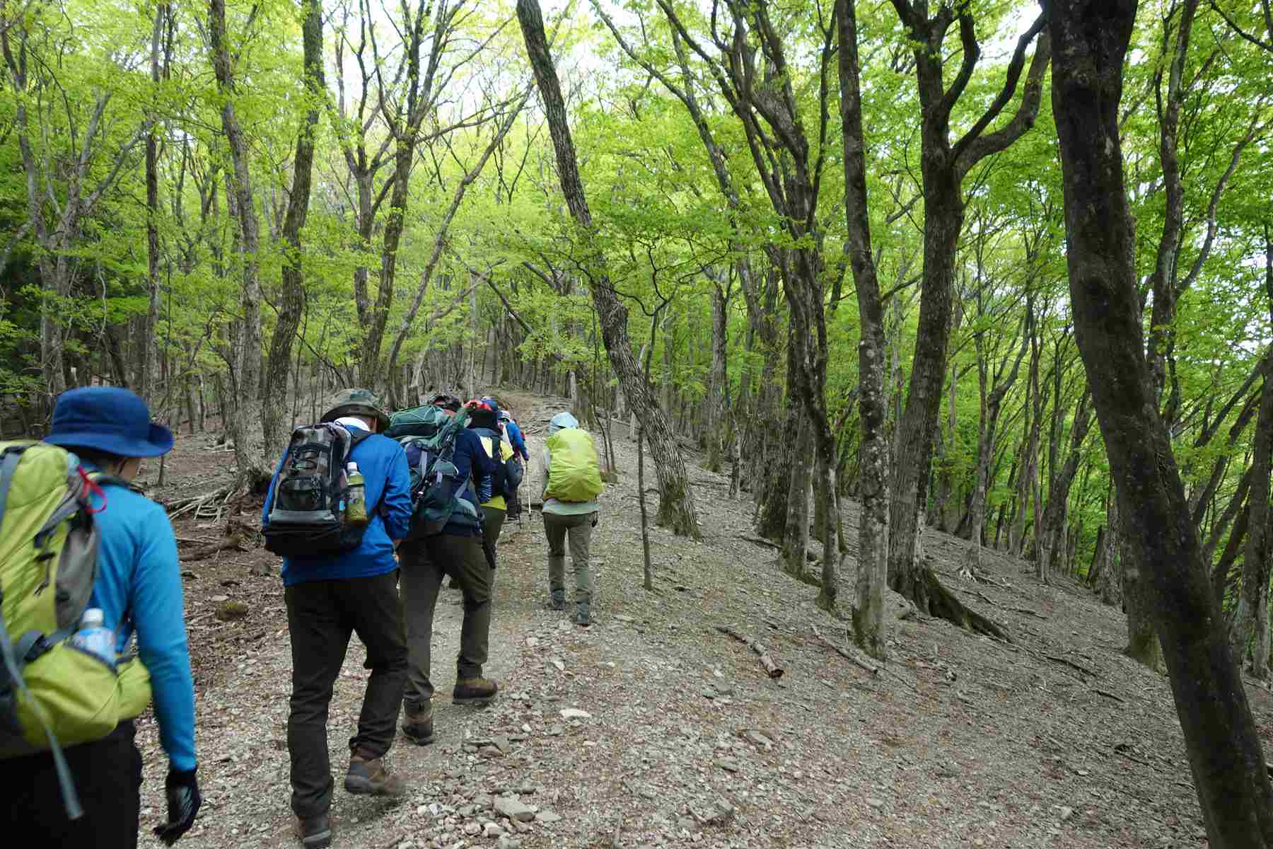 大持山への急登に向かう 芽吹きの勢いに癒されました