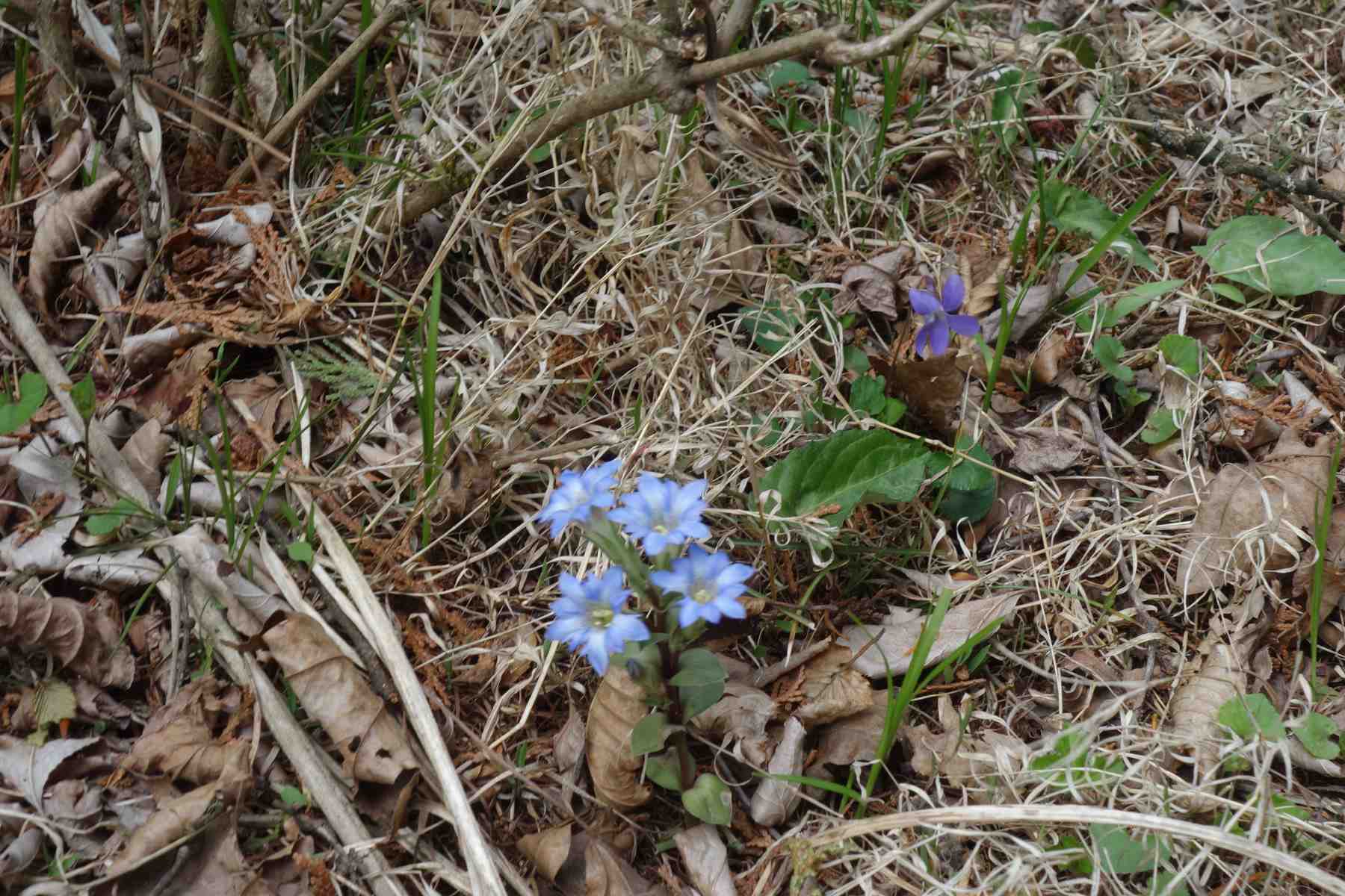 新緑の中のミツバツツジ色鮮やか ふでリンドウかな