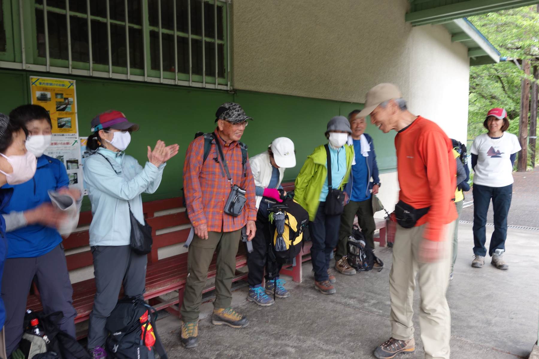 長者屋敷の頭でお菓子タイム 浦山口駅で皆さんへ感謝の挨拶