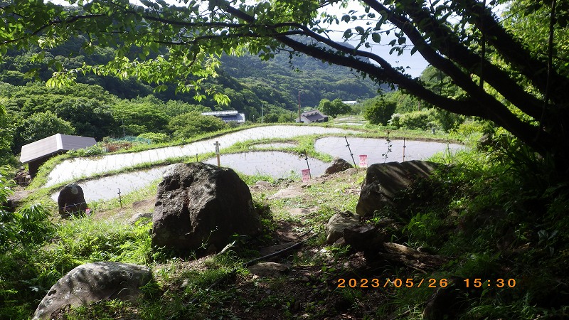 →14:10暗沢山→14:45石部棚田分岐15:25→石部の棚田→16:30石部温泉