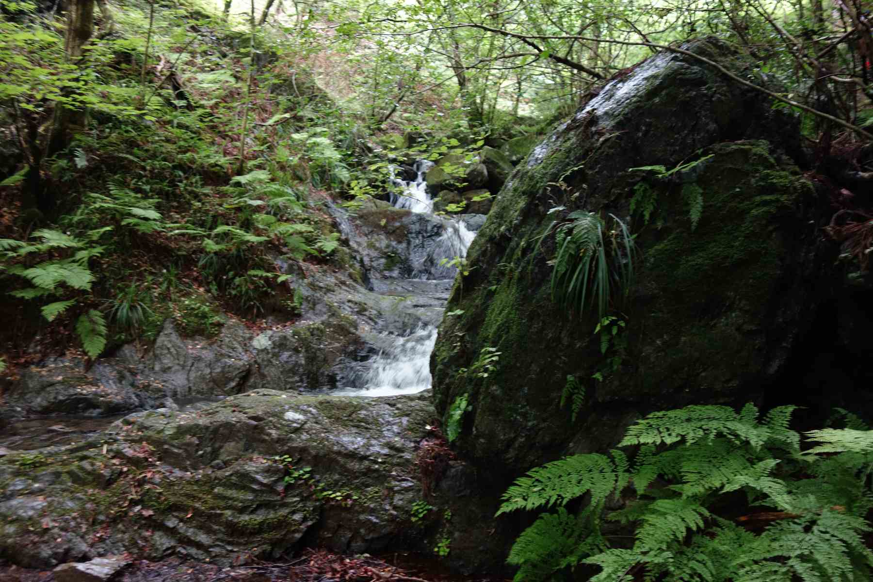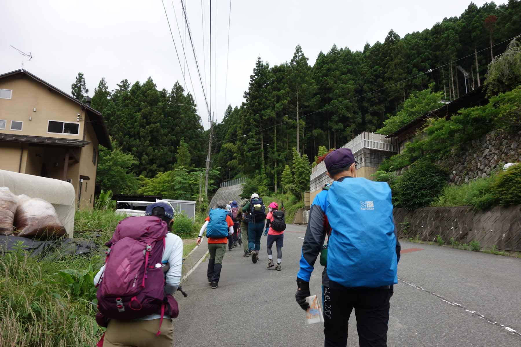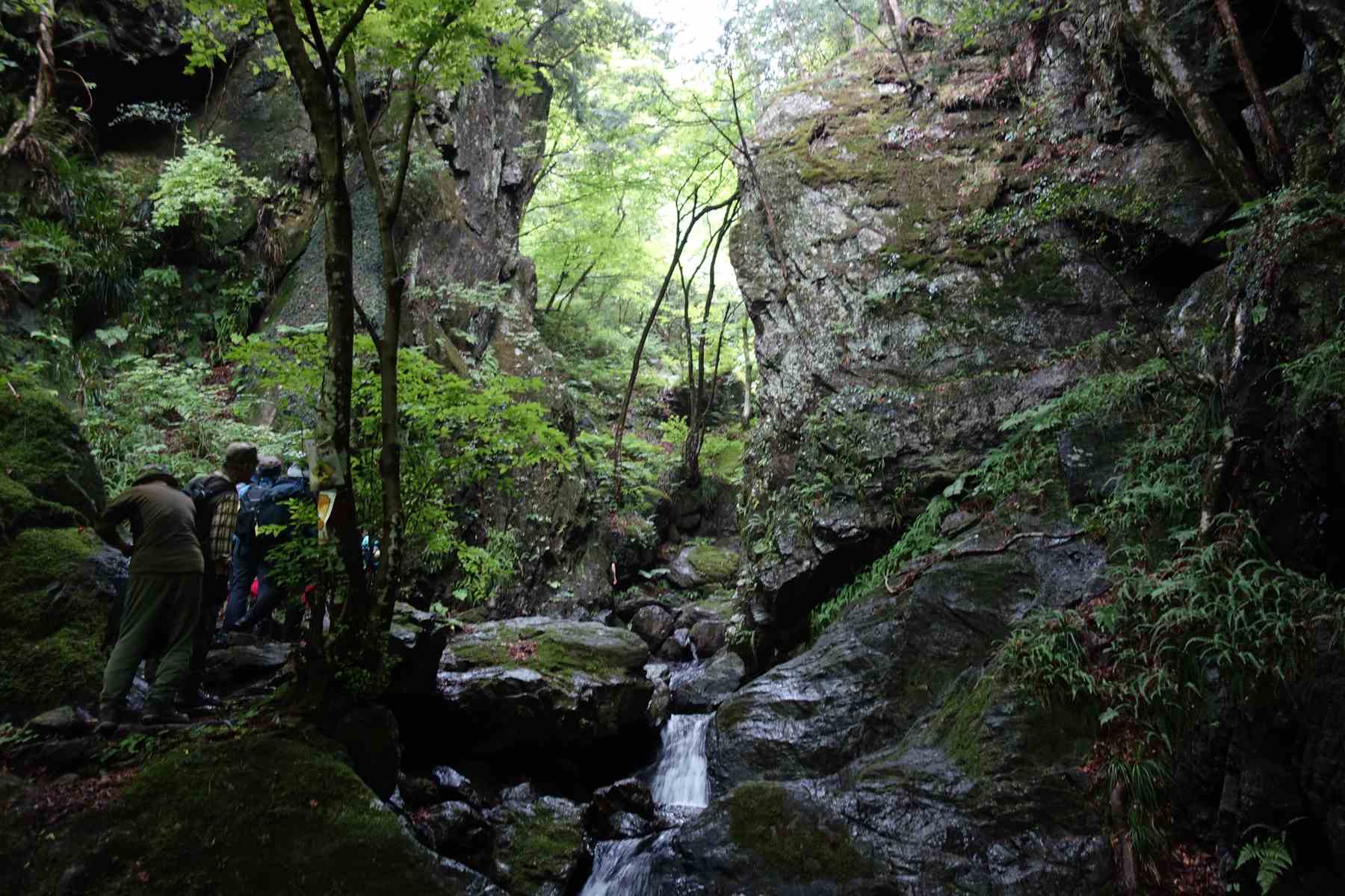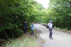 白谷沢登山口につきました水を飲む 沢迄こんな道を歩きます