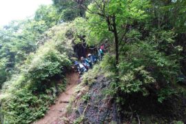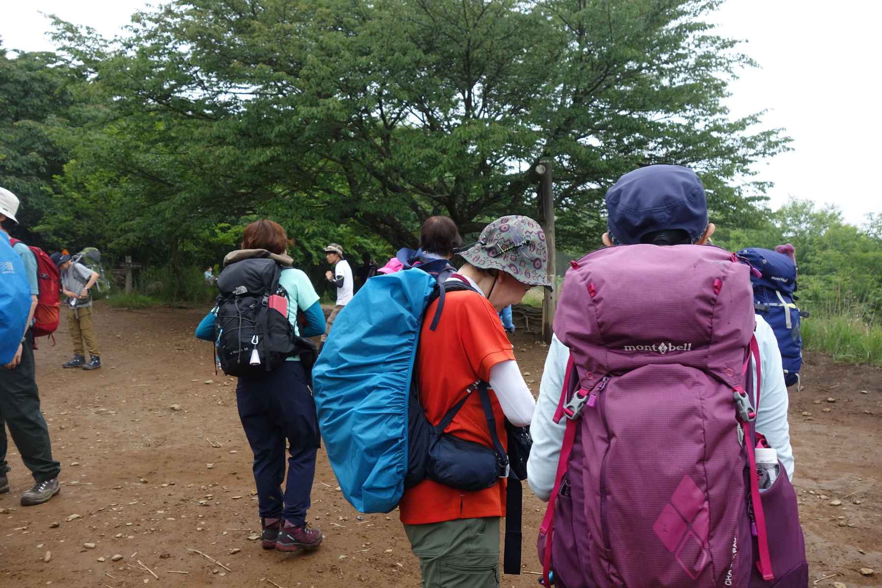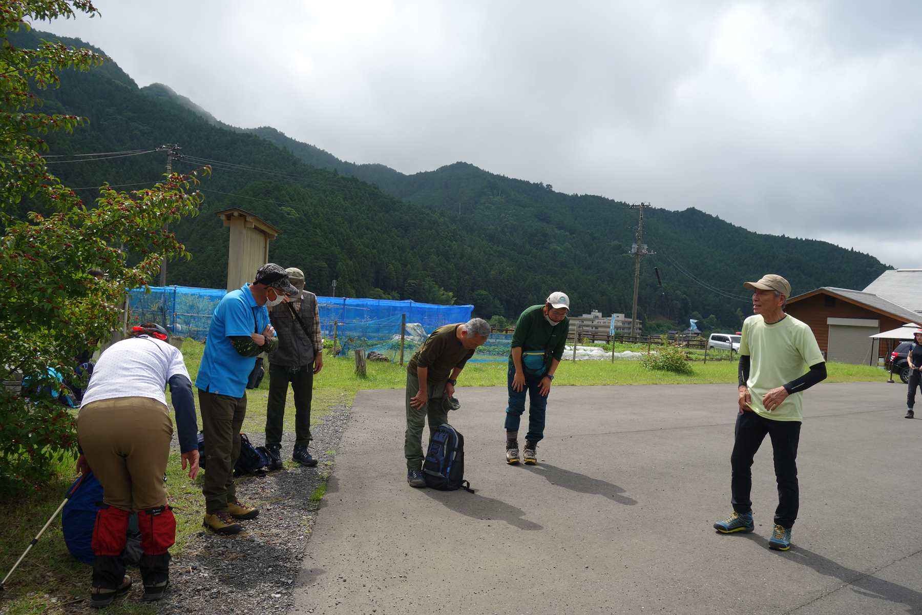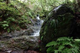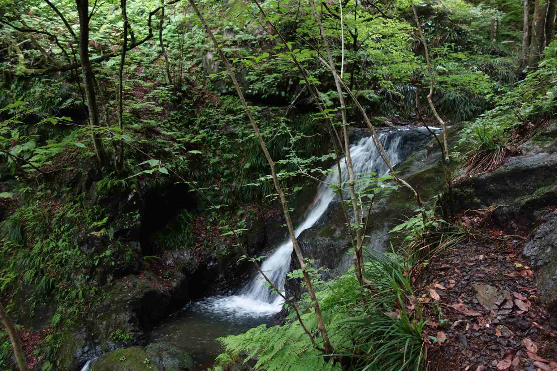 白谷沢登山口につきました水を飲む 沢迄こんな道を歩きます