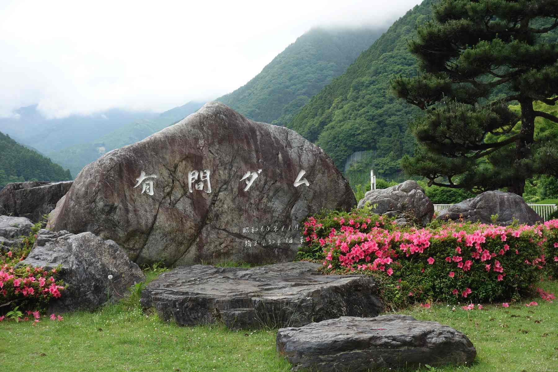 有馬ダムツツジが満開でした 久しぶりに満々と水を蓄えていました