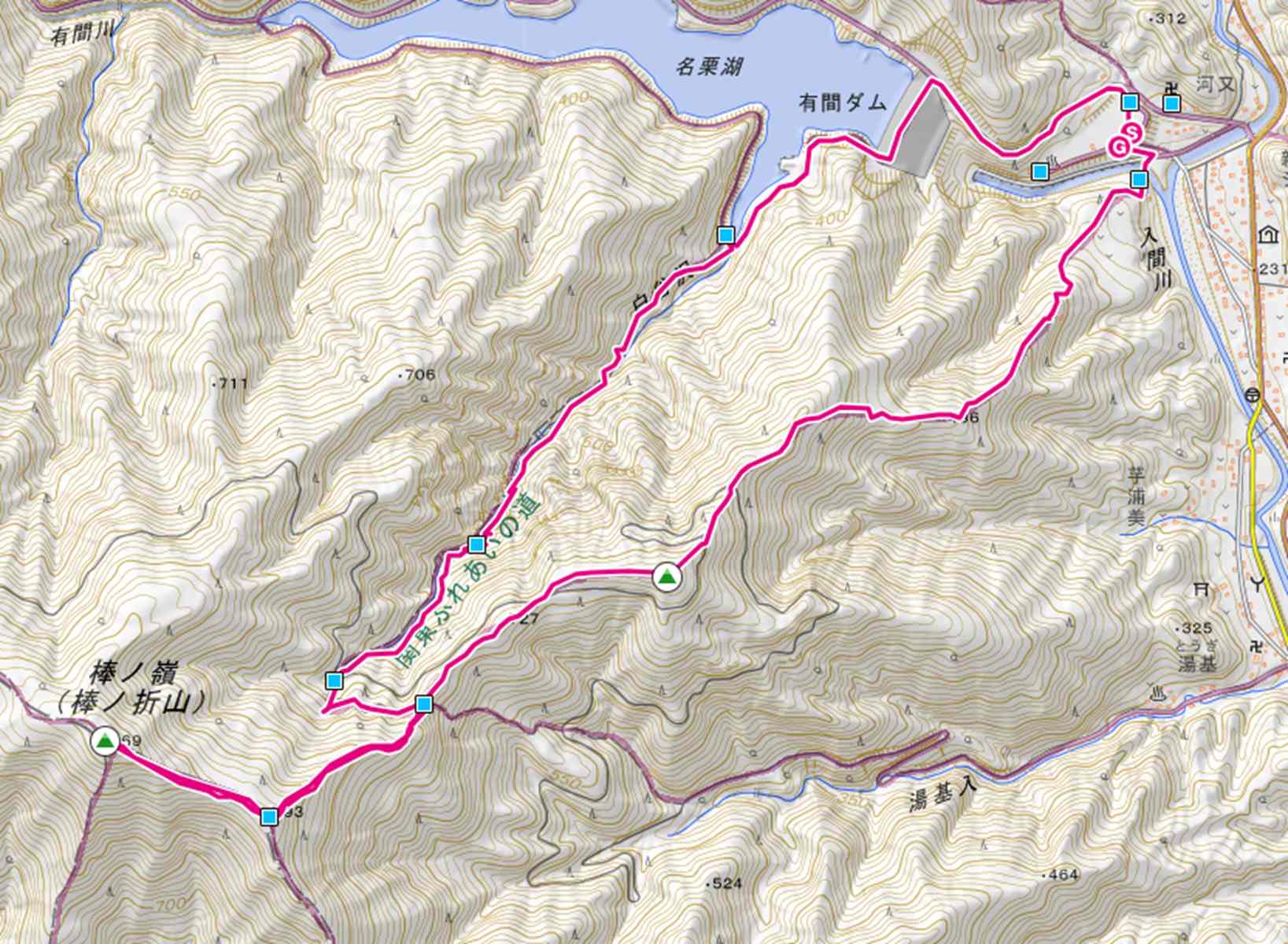 11:35→11:50棒の折山(昼食)12:20→岩茸石12:50→さわらびの湯14:25