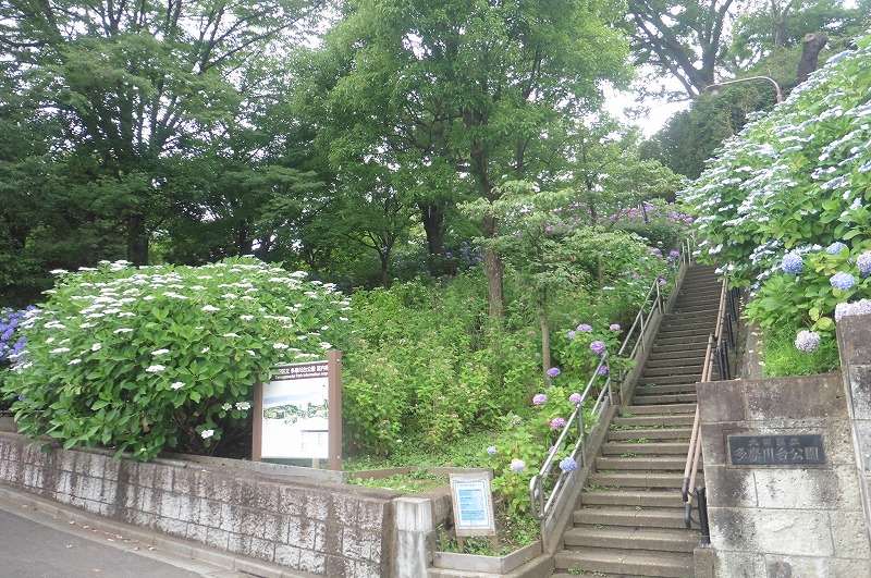 多摩川台公園 多摩川沿いにある広い公園です。自然林の道、古墳、見晴台、水生植物園、あじさい園、ふたつの広場など、見所豊富!!