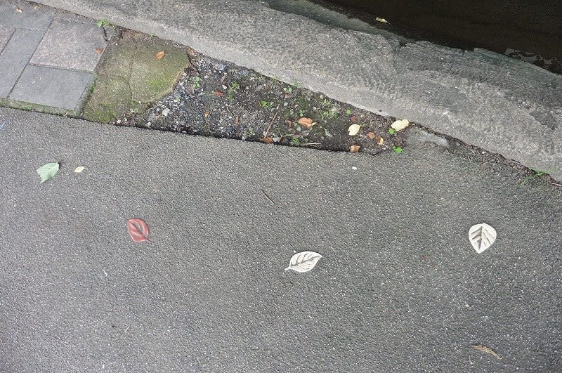 駅前から放射状 の分かれ道、イチョウ並木の道を歩きます。静かな住宅街です。