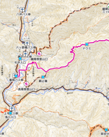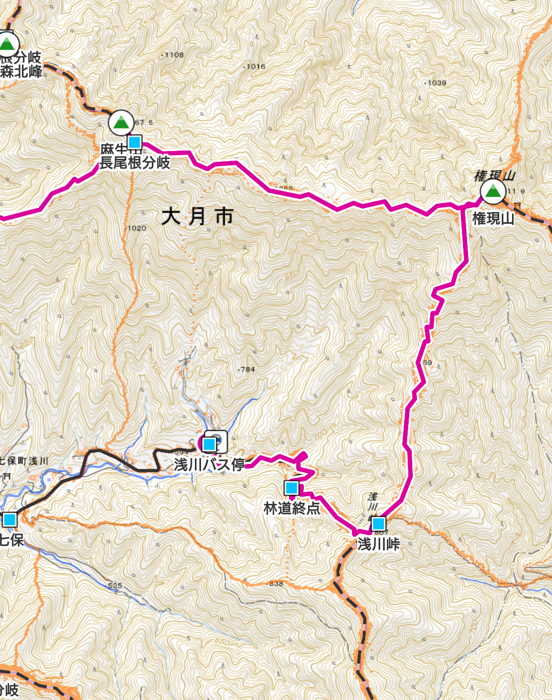 12:45ー13:47権現山13:55-14:55浅川峠15:00ー浅川バス停15:00ー(バス)-