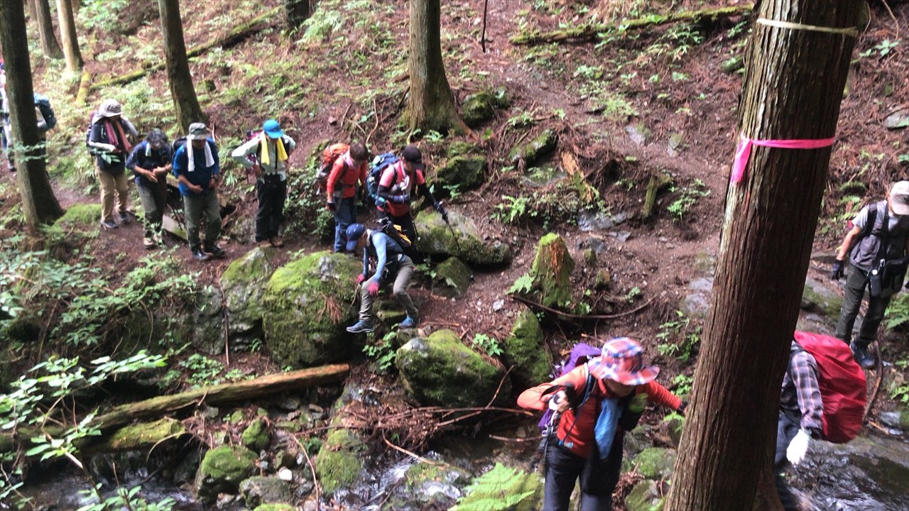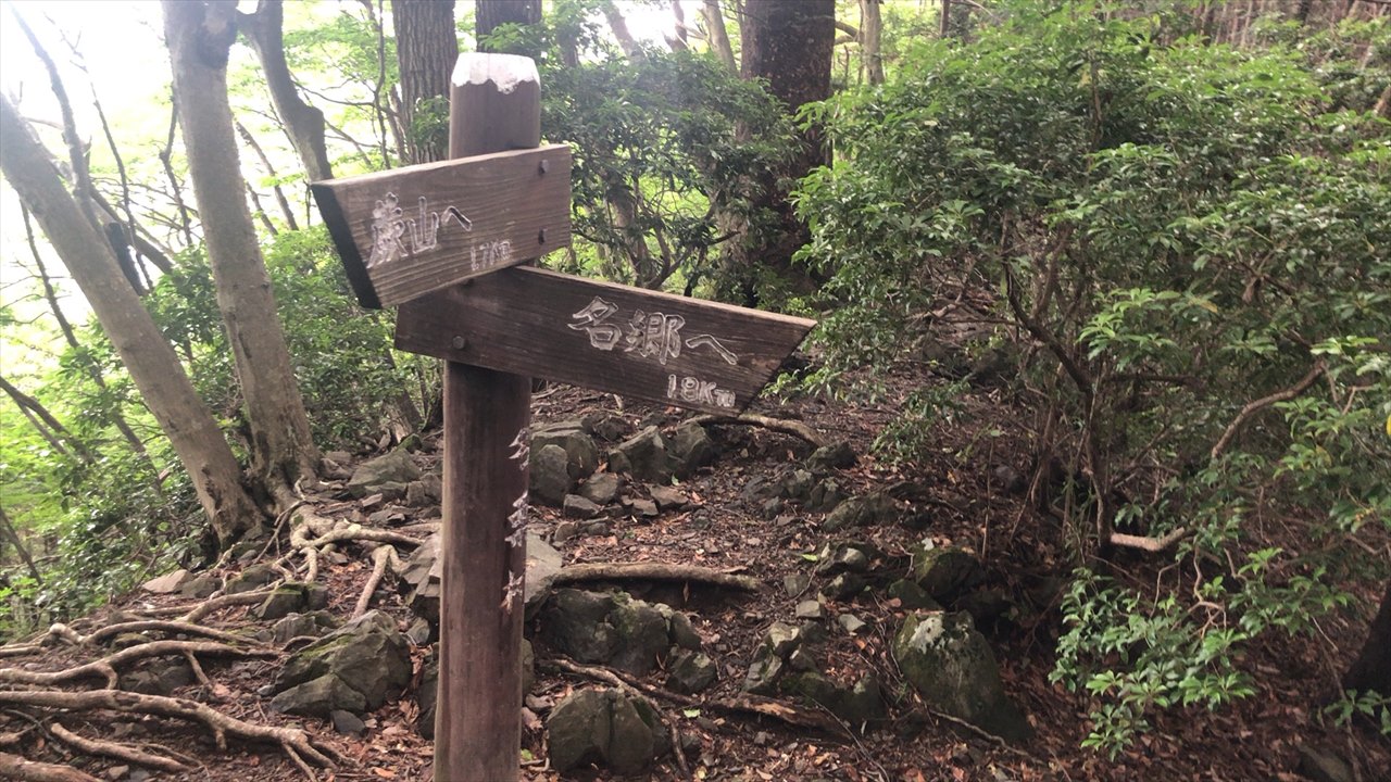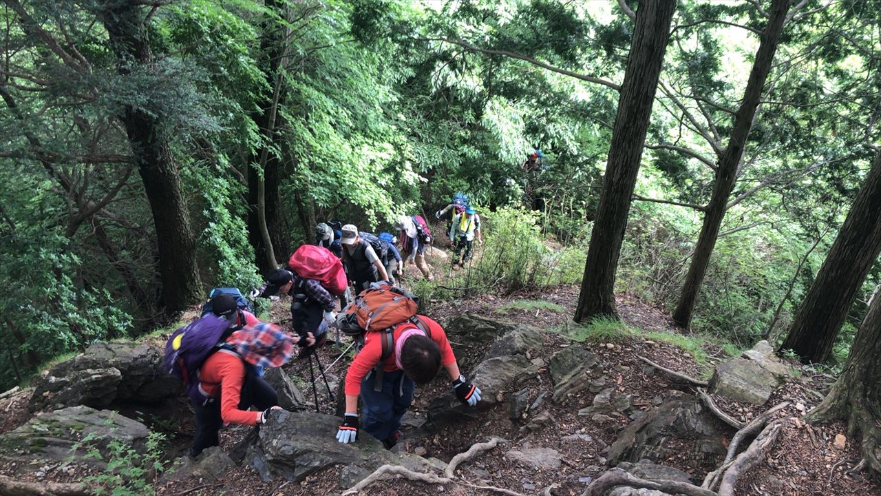 この「屈曲点」までは急登が続き、蒸し暑さで顔中が汗まみれになりました。