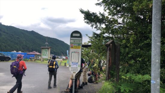 ゴールの「さわらびの湯」バス停。 予定より早い、15時4分のバスに間に合いました。