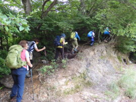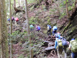 コメント:いつもこのコースは涼しいんだろうな、と想像はしても歩く機会がなく、今回が初めての棒ノ折の夏山登山となる。雨後の沢の増水が心配だったが、登山口にある有間ダムの水量が少なかったので安心のスタートとなる。久しぶりの白谷沢は緊張しつつもワクワクと楽しく涼しかった。下りは根っこが 露出する難路を丁寧に降りてみんな揃って笑顔で朝のバス停に到着❕