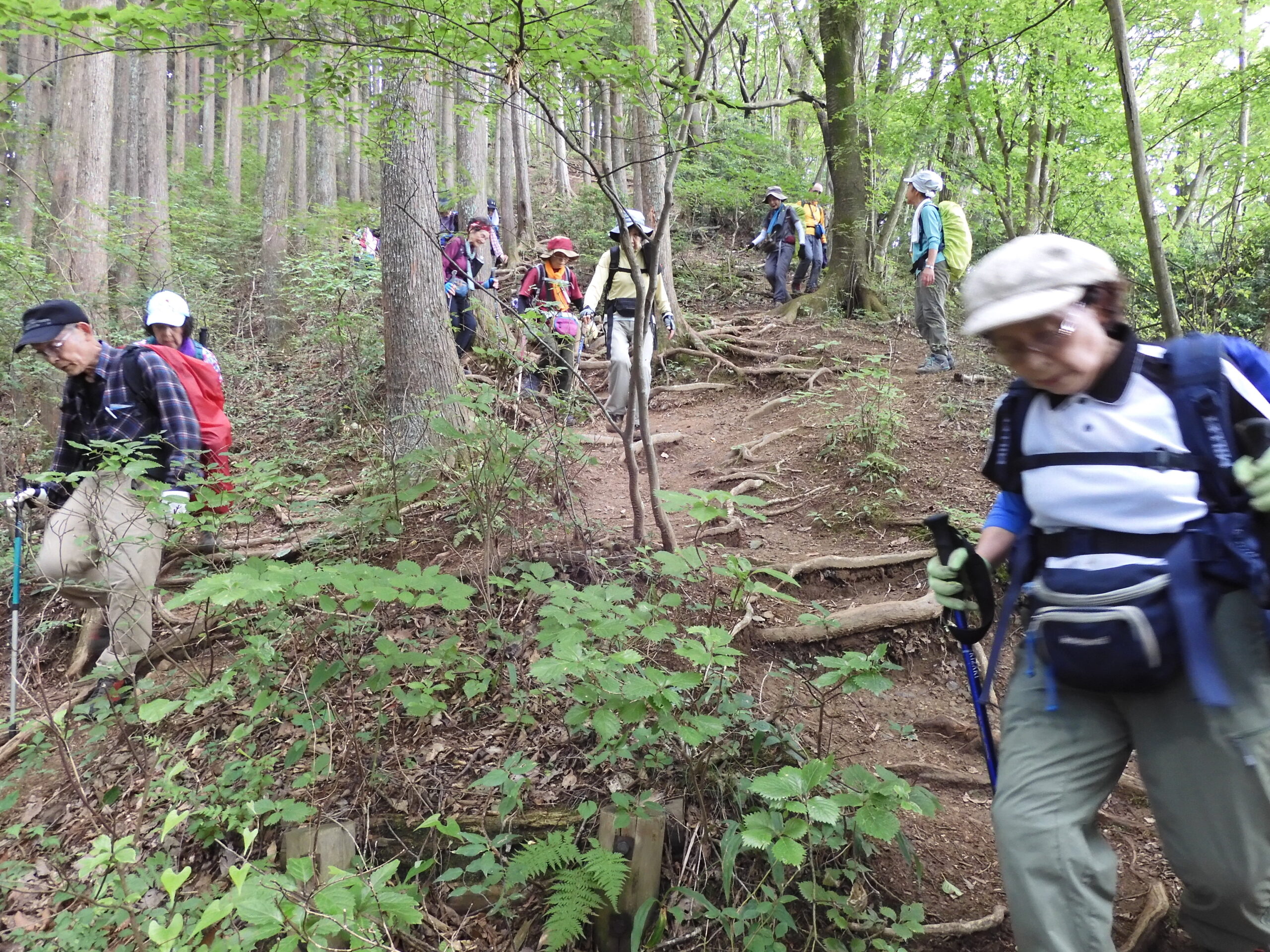 登山道は根がむき出し状態、歩きずらく慎重に下山 さわらびの湯バス停到着お疲れ様❕