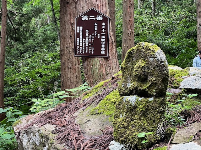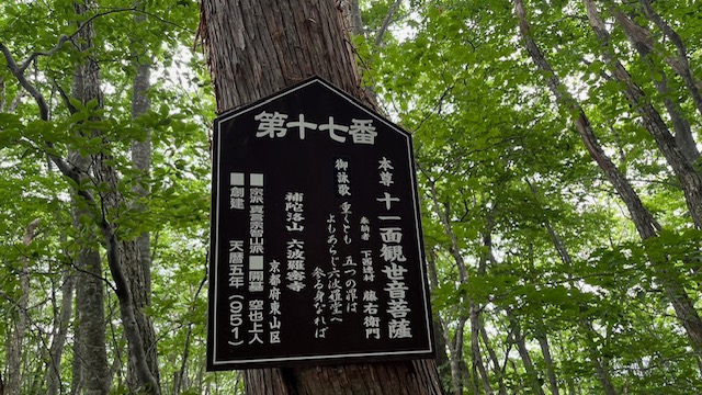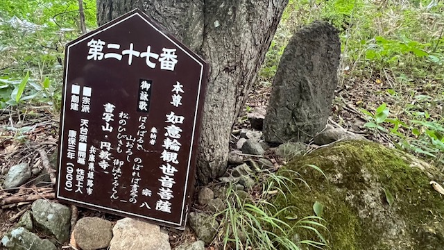 登山道脇には 一番から三十三番迄説明の看板と共に馬頭観世音菩薩の石仏が祀られている