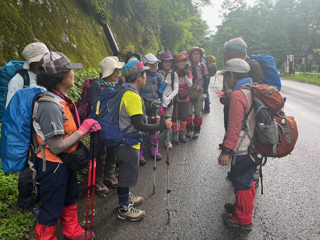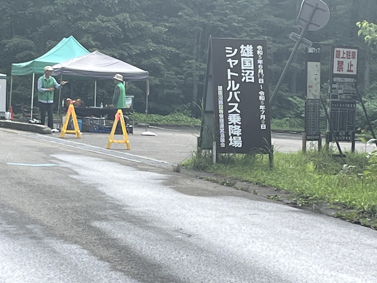 8:10雄国沼駐車場にて環境保全協力金(500円)支払う! 雄子沢登山口にてリーダー協力者より出発前の注意事項等の説明