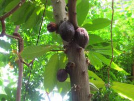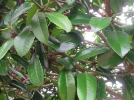 タラヨウ 葉の裏を傷をつけると黒くなり、文字が書けます。「葉書」の始まりはこの葉からだそうです。