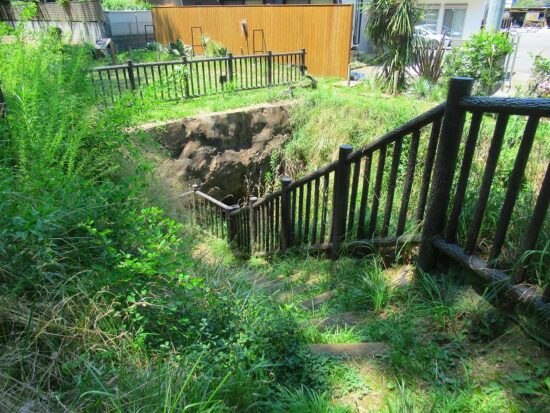 60ヶ所の竪穴があったそうですが、現在は4か所残されていて柵で囲まれています。
