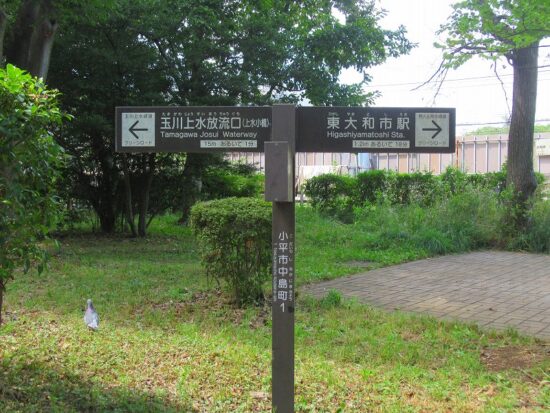 羽村取水堰から流れてきた玉川上水が上水路としての役割を終える場所です。これより下流の玉川上水の水は、多摩川の水ではなく、昭島市の東京都下水道局・多摩川上流水再生センターにて下水を高度処理した再生水なのです。