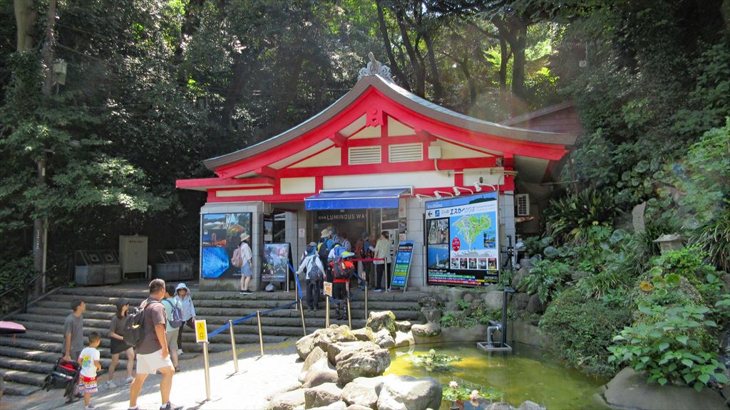 昭和34年(1959)に国内初の屋外エスカレーターとして登場しました。高低差46mを4分ほどで上れます。4連で結ぶエスカレーターの長さは全長106mあり、高齢者や小さな子供連れのファミリーが江の島頂上部へ行く際の頼もしい足となっています。