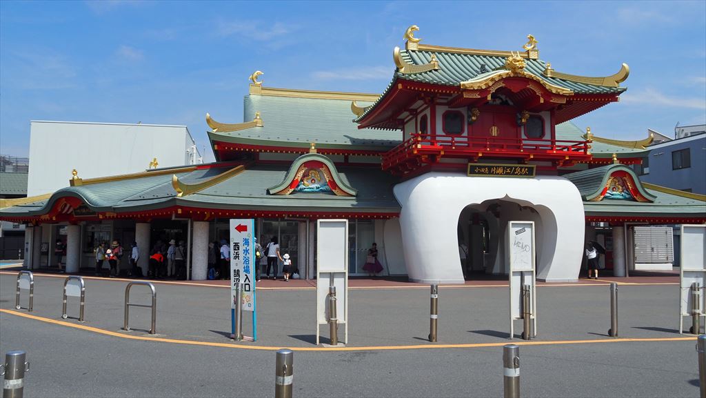 小田急片瀬江ノ島駅(スタート) 竜宮城を模した独特な駅舎だ。