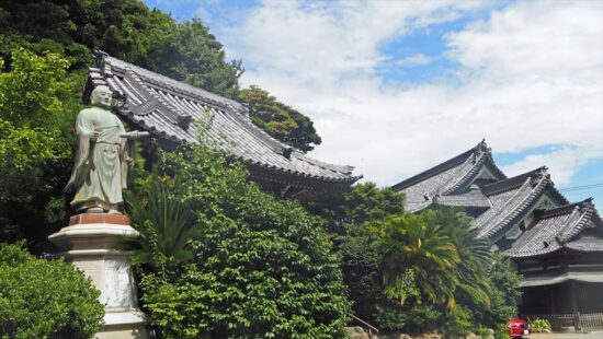 なお本格的な寺としての格式を整えたのは津村の国人で日蓮宗の信奉篤い島村采女が慶長6年(1601年)に土地を寄進して以来の事とされている。 江戸時代までは選任住職を置かず子院である片瀬腰越八ヶ寺(通称片瀬八ヶ寺)が輪番で維持していた。片瀬八ヶ寺の山号は全て龍口山。文化財指定はありません。(出典・参考:wikipedia)