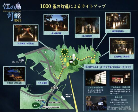 江の島灯籠 江島縁起をモチーフにした大小1,000基の灯篭が点灯。