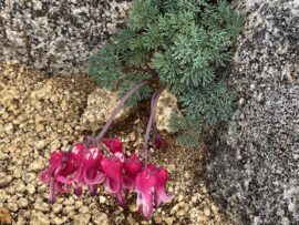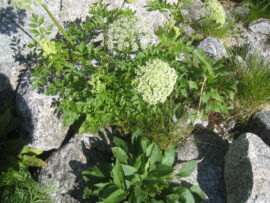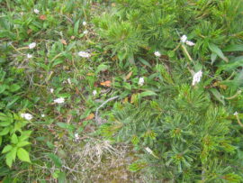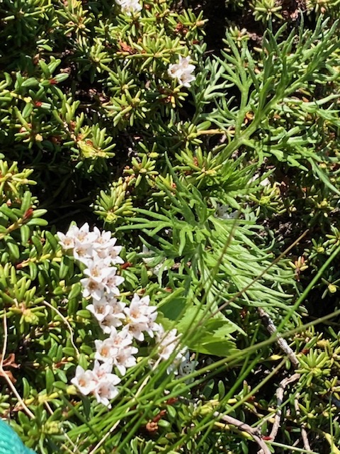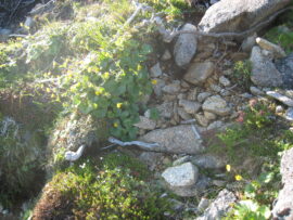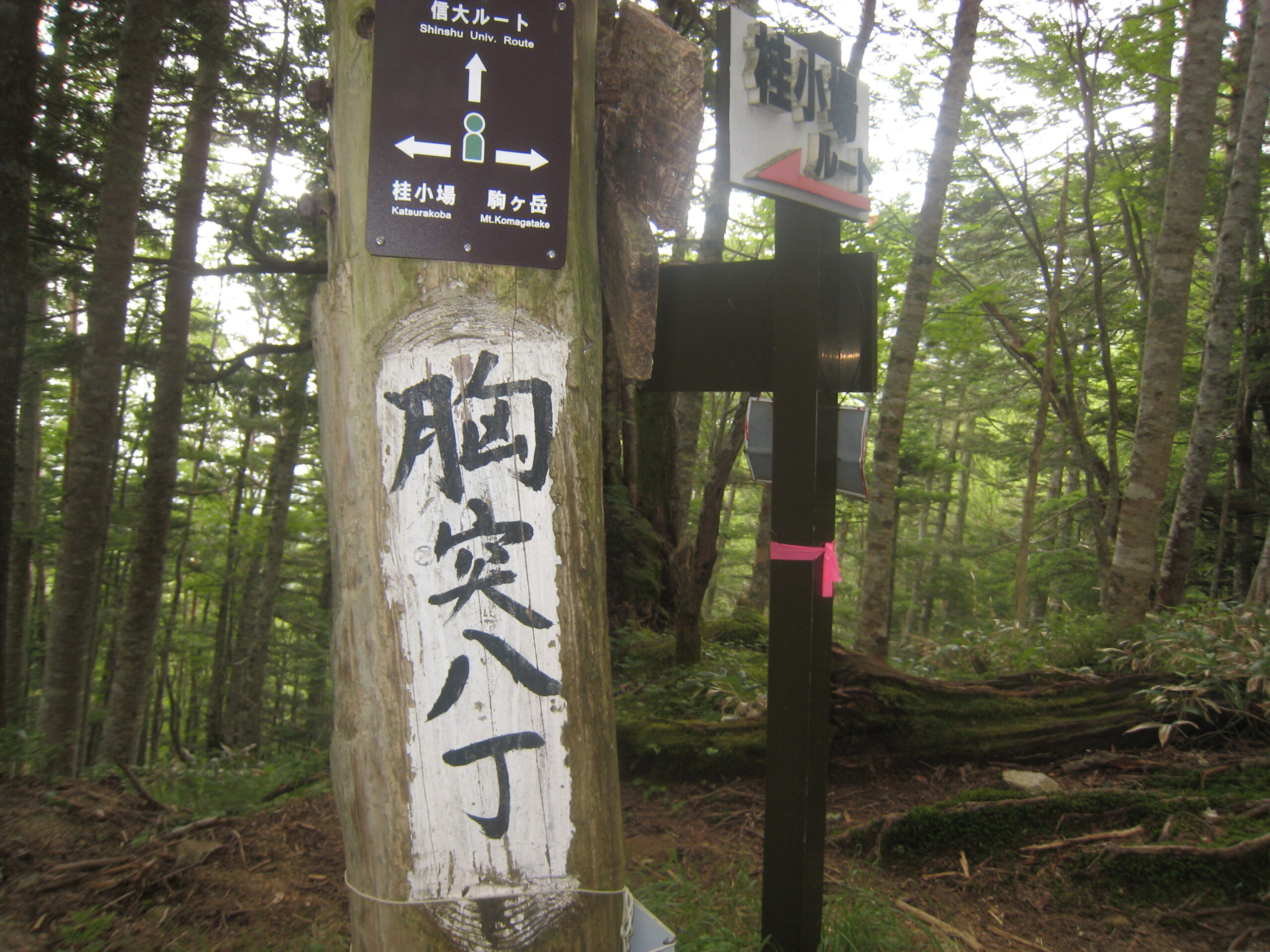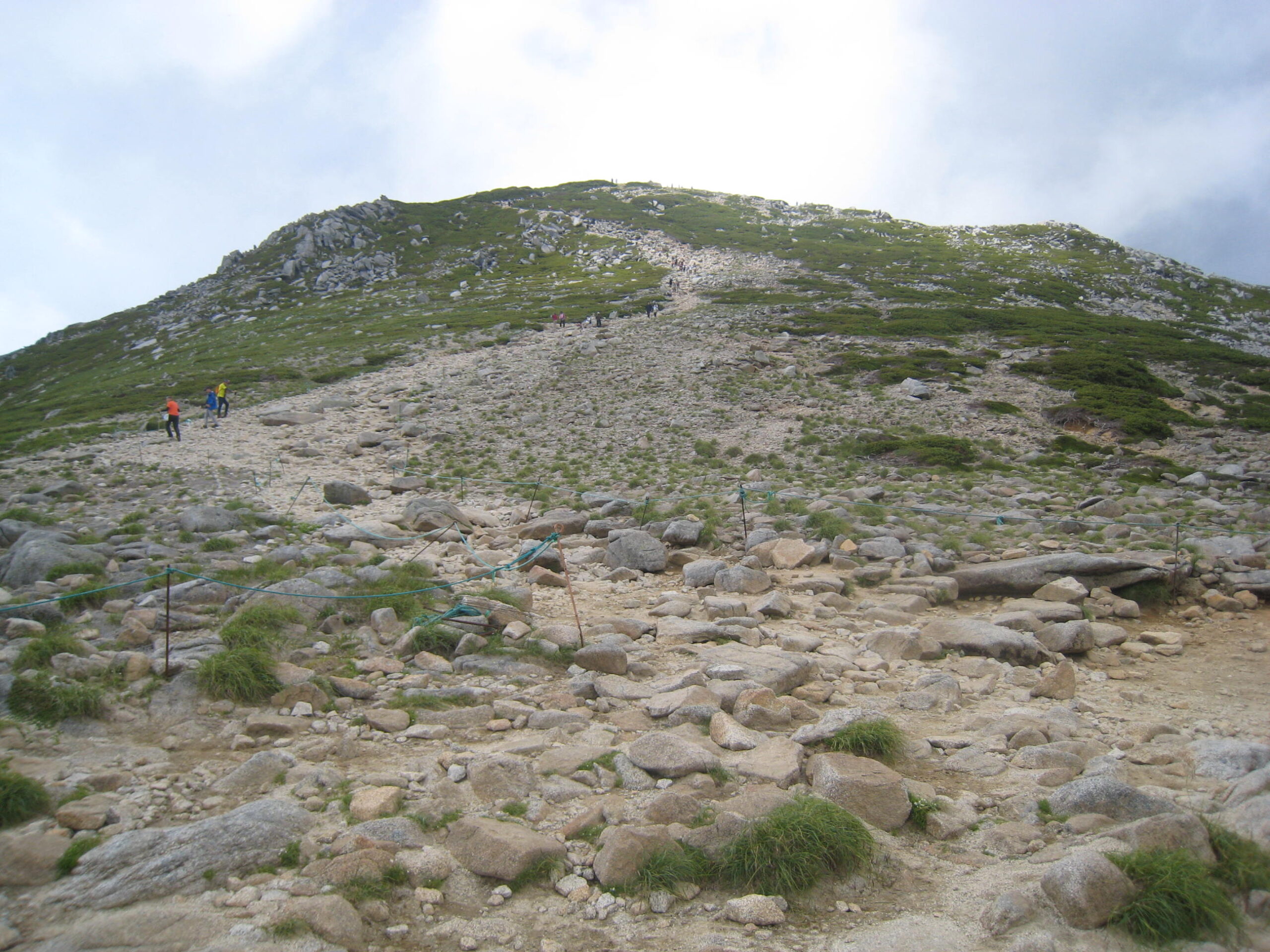 もうお花は終わってしまいました。例年より3週間早いです」と言うお話しでした。初めての参加者に素晴らしいお花畑見て欲しかったけど残念❕ 駒ケ岳から八合目までは岩場が続き桂小場まで長い長い降りでしたが稜線からは御岳山、乗鞍岳東に甲斐駒ケ岳をはじめ南アルプスの山々と富士山が遠望出来ました。