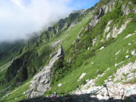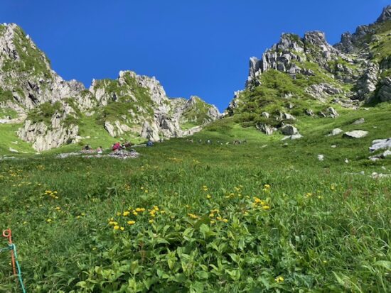 宝剣岳の素晴らしい景色を思い出すが降りてビックリ❕ お花畑にはお花が無い❓❕ 小屋の方にお聞きしたところ「何時もは残雪が海の日まで有るのに今年は6月には雪がなくなり今年は