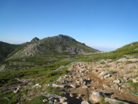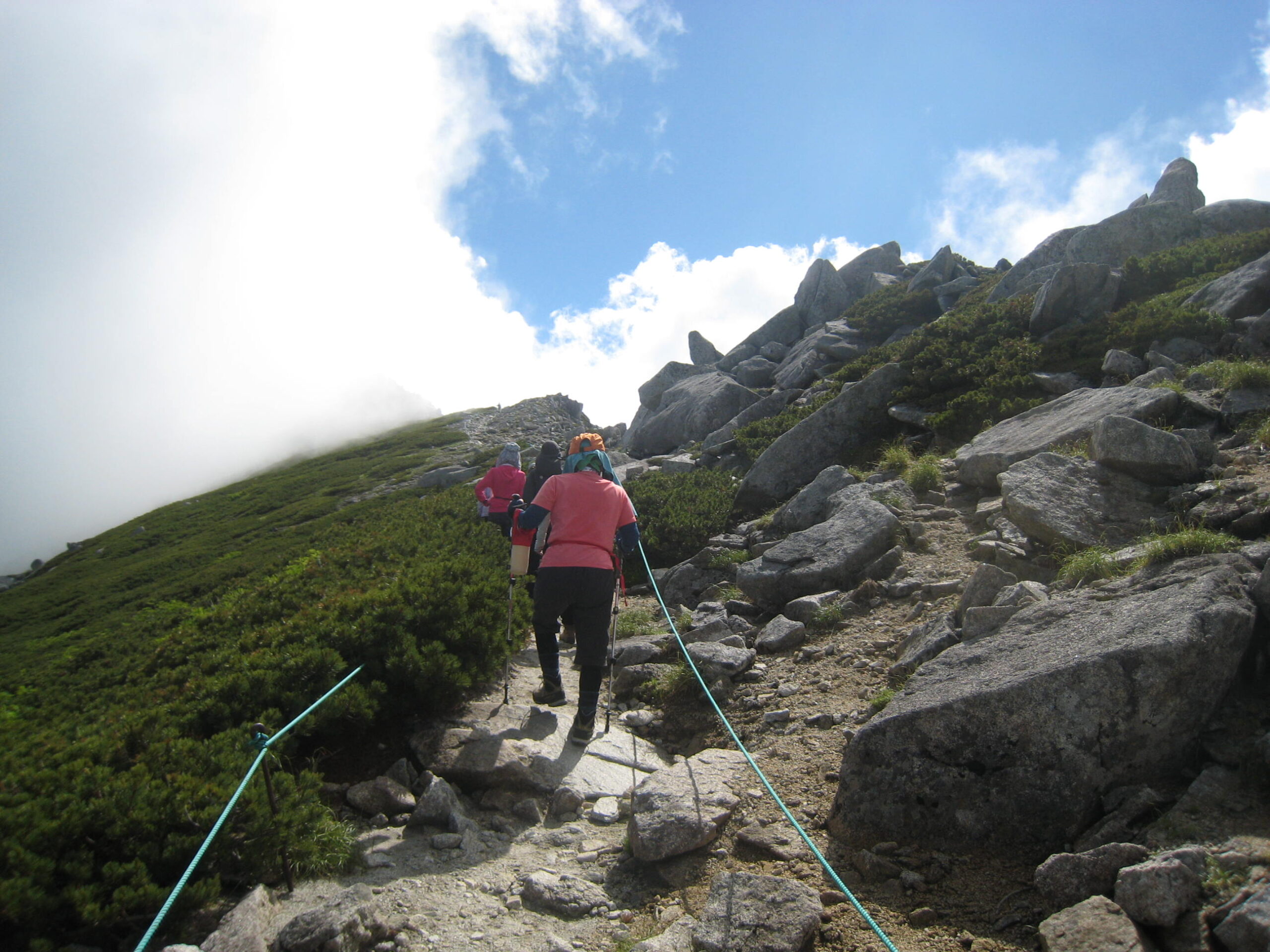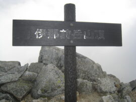 伊那岳前9:09 →乗越浄土9:39→宝剣山荘10:00→中岳10:45→木曽駒ケ岳山荘10:56 泊