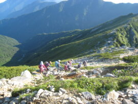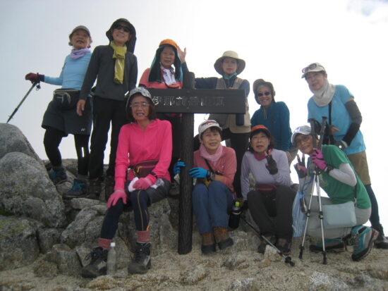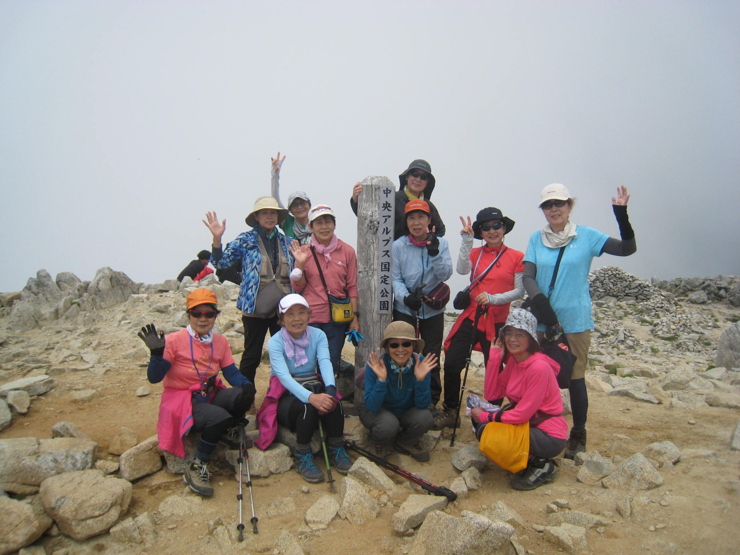三日間、文句なしのお天気に恵まれアルプスの雄大な景色を堪能しました、お花畑は残念でしたが、それでも満足できた楽しい山行でした。今回は男性参加者がなく女性だけでしたがリーダーの参加ありで協力頂き沢山の手助けを有難うございました。全員、無事に下山でき皆様に感謝いたします。 佐野満喜子