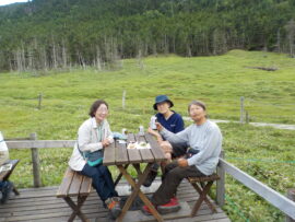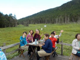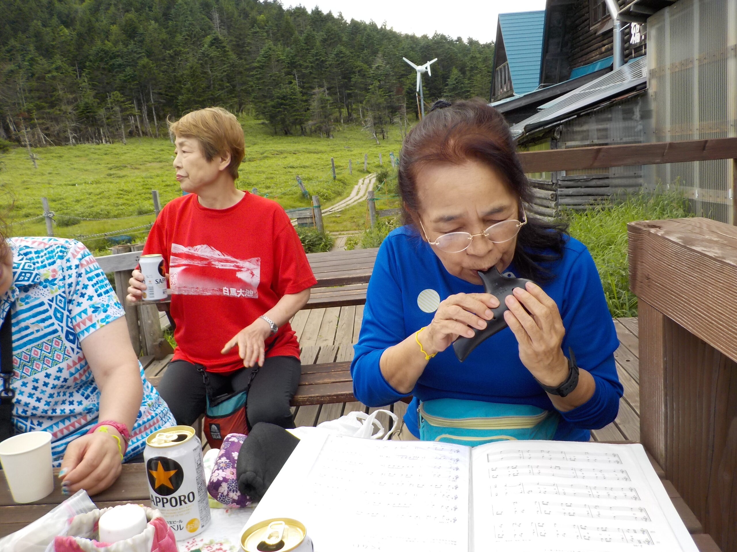 ロープウェイで一気に登り坪庭から北横岳へと向かう山頂は16度Cと涼しくゆっくりと休んで宿へ向かう夕飯までの時間があったのでミニミニコンサートでオカリナで歌う、夜は満天の星空で満足「明日も元気で歩けますように」と願った又「今度が初めての宿泊です」と言う方もいて「とても楽しかった」の言葉が印象的でした、皆さんお疲れ様でした。