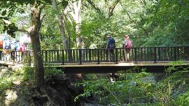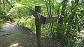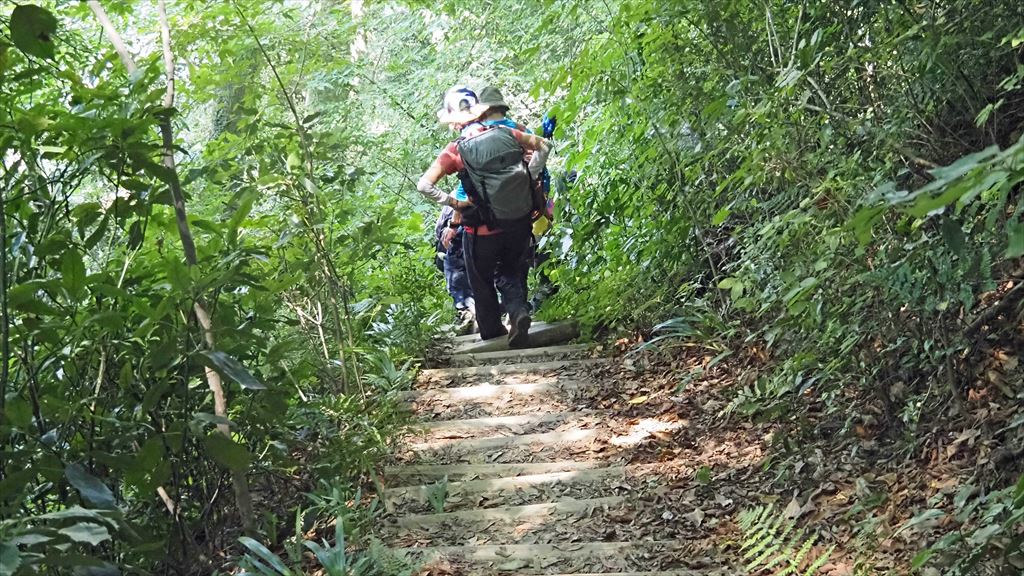 木道と階段が多く 登山靴では歩きにくさを感じられます。以前の東屋は、取り壊され板張りの大きな休憩場が設置されていました。1号路は高い樹木が多くく日差しを遮り涼しかったです。