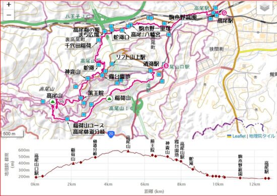 京王高尾山線高尾山口駅9:30→清滝9:40→稲荷山10:35