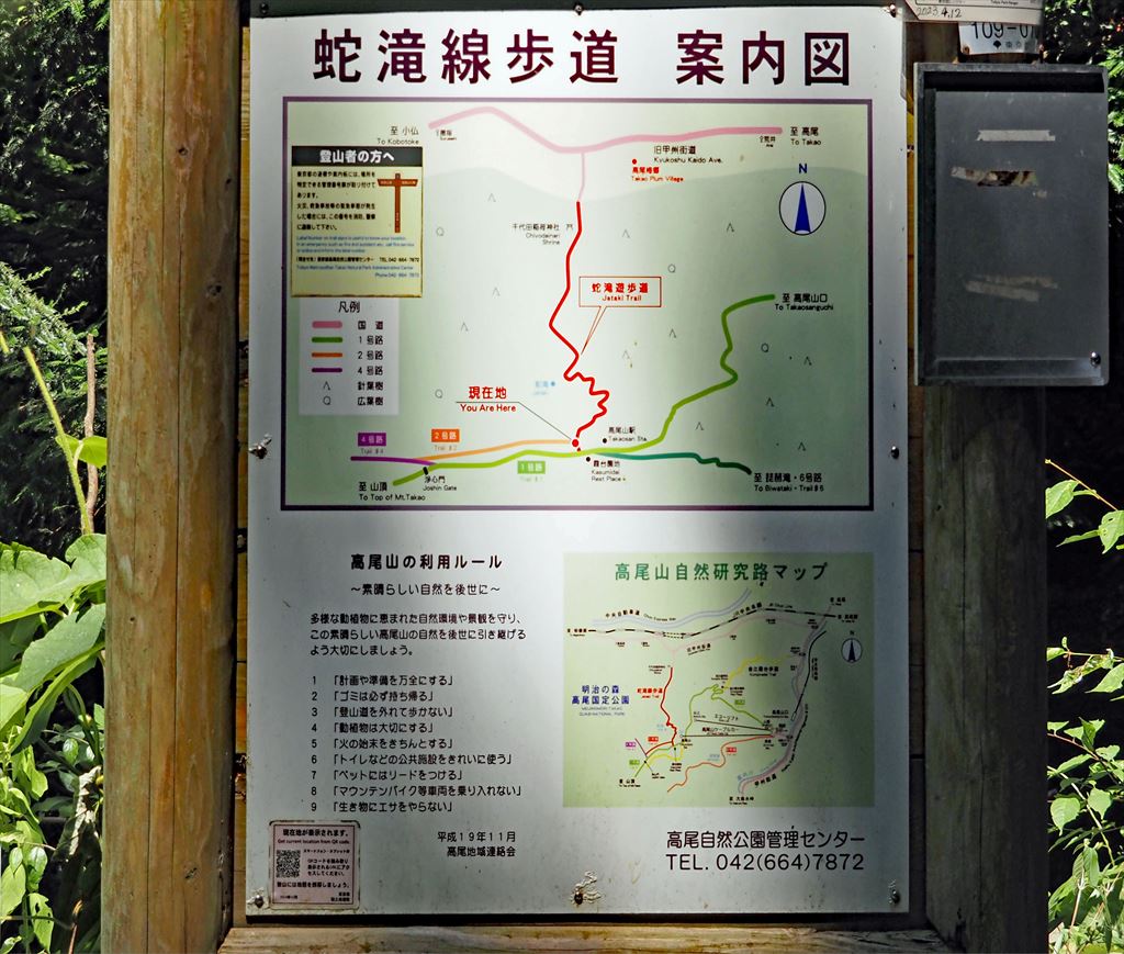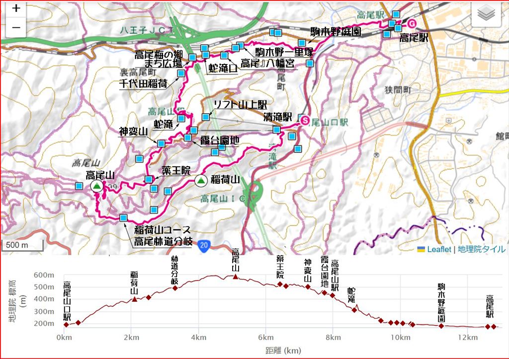 →蛇滝13:45→駒木野線遊歩道→同左入口14:27→14:55高尾駅