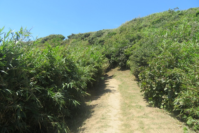 真っ青な夏空の中、海岸を目指して歩きます