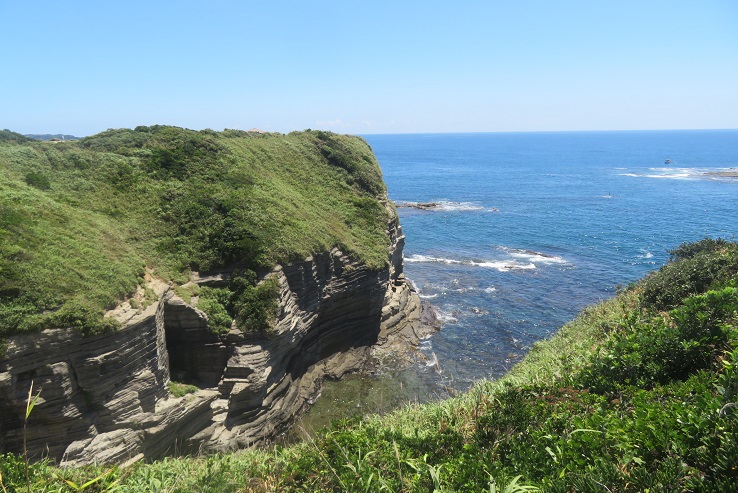 鵜原理想郷に出ると断崖から広がる青い空と青い海の素晴らしい景色が広がります
