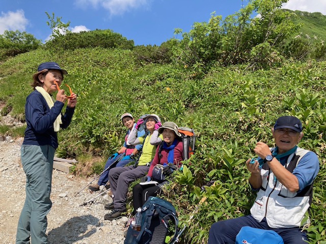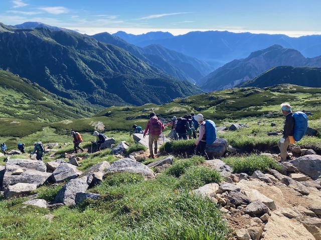 裏銀座縦走に挑戦させていただき ありがとうございました。4泊5日の山旅は体力面で自信となり、なにより驚異は先輩方のパワーで尊敬の他なく、今後の山ライフのお手本になりました。