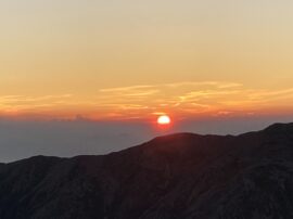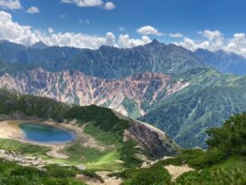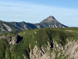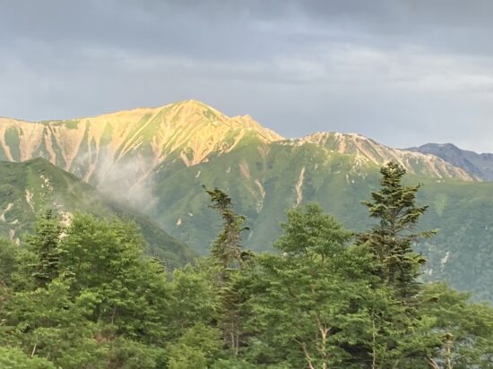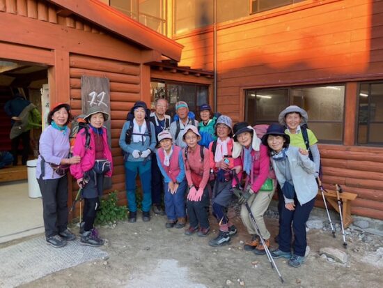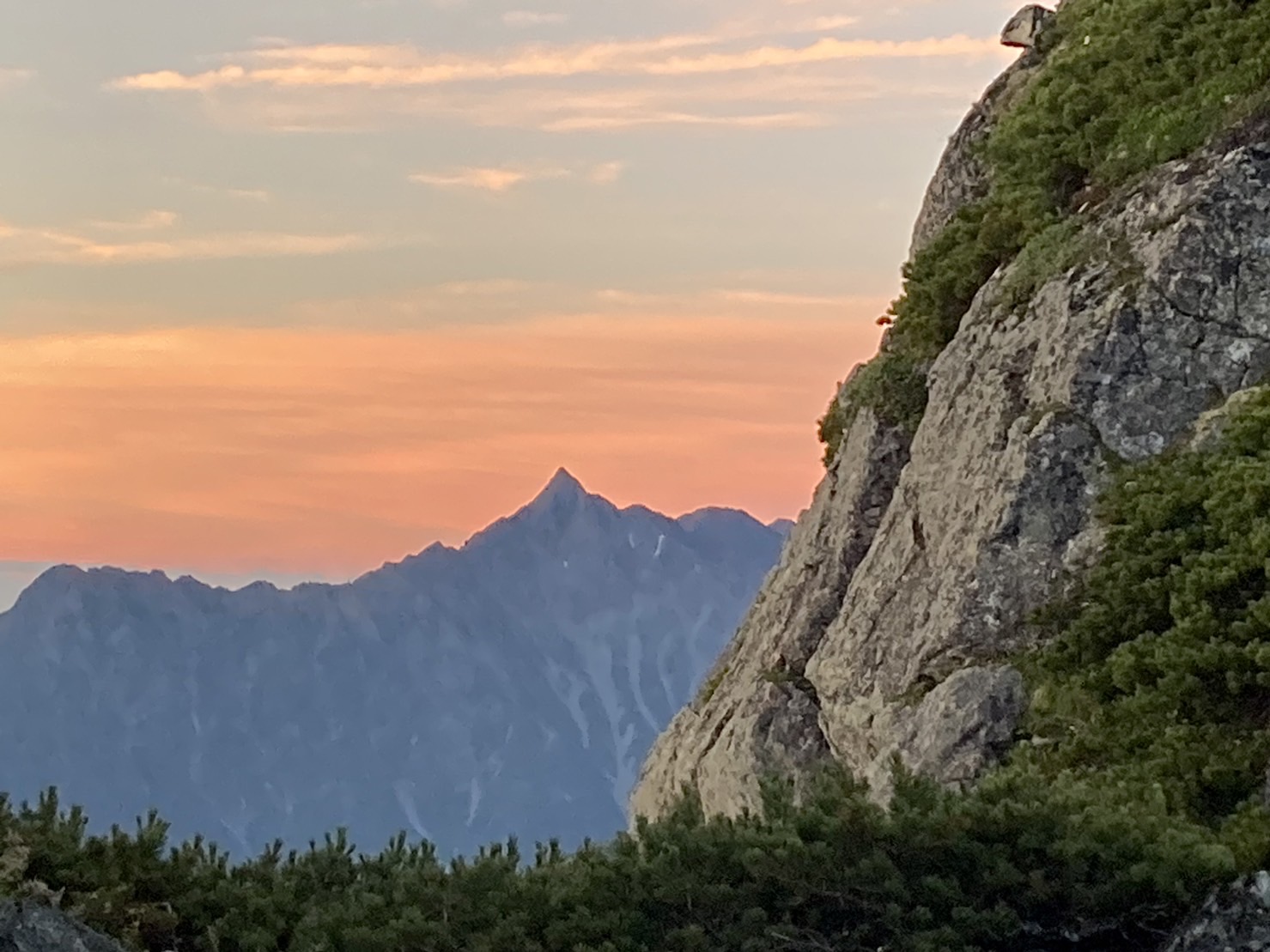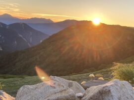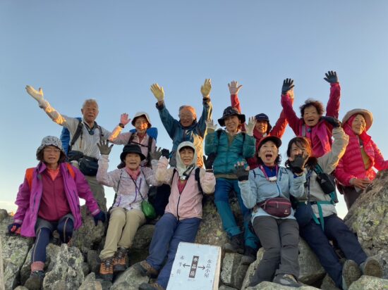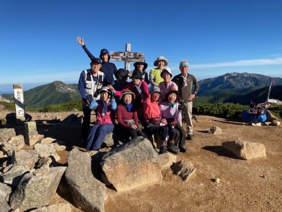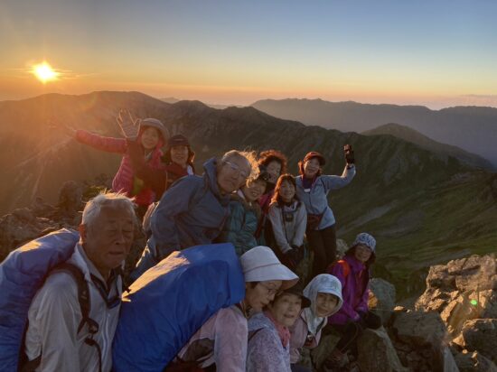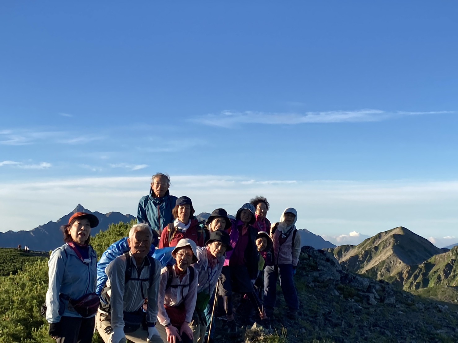 北アルプスの山容を紫幹翠葉と例えるにふさわしい程、奥深く感動の日々でした。稜線歩きが続いた毎日、大きな山々に包まれて明日の糧になった事は間違えありません。早朝の水晶岳の日の出は今も脳裏に焼き付いています。4日目の宿泊の烏帽子小屋のテラスで差し入れのビールを山並みを観ながら反省会をし楽しい会話をして笑った事は良い思い出になりました。皆さまに感謝です!