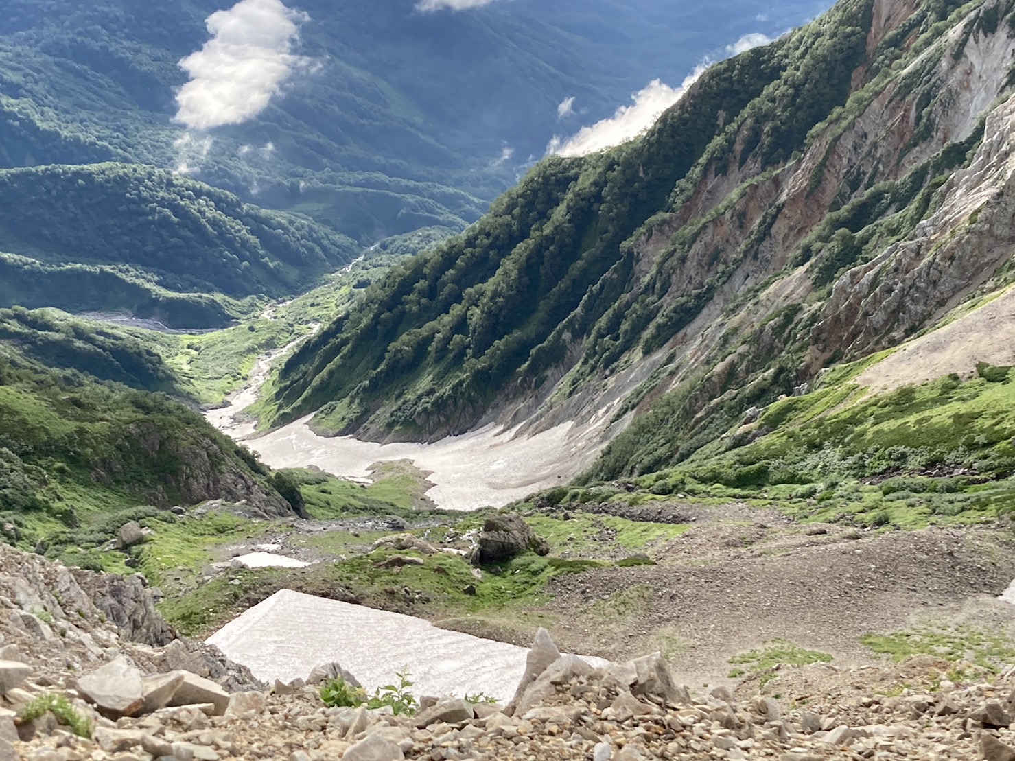 「白馬大雪渓」今年の雪解けは早かった と言われています。雪が少ない。水不足が心配です。