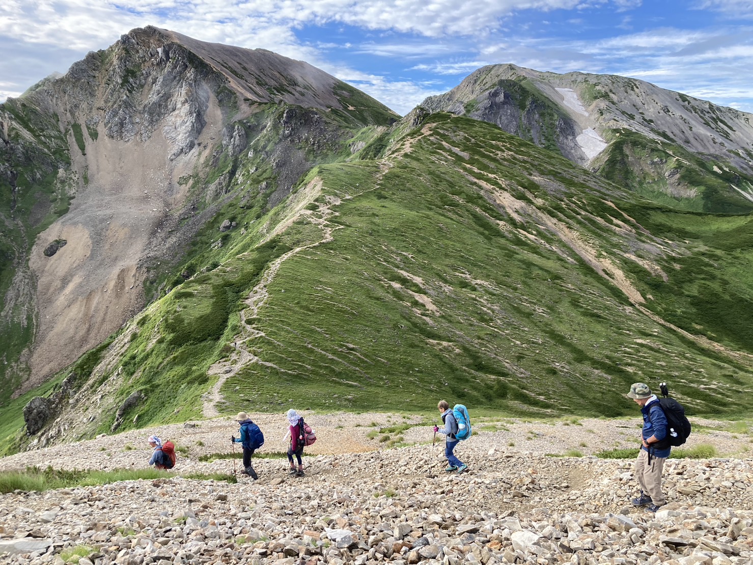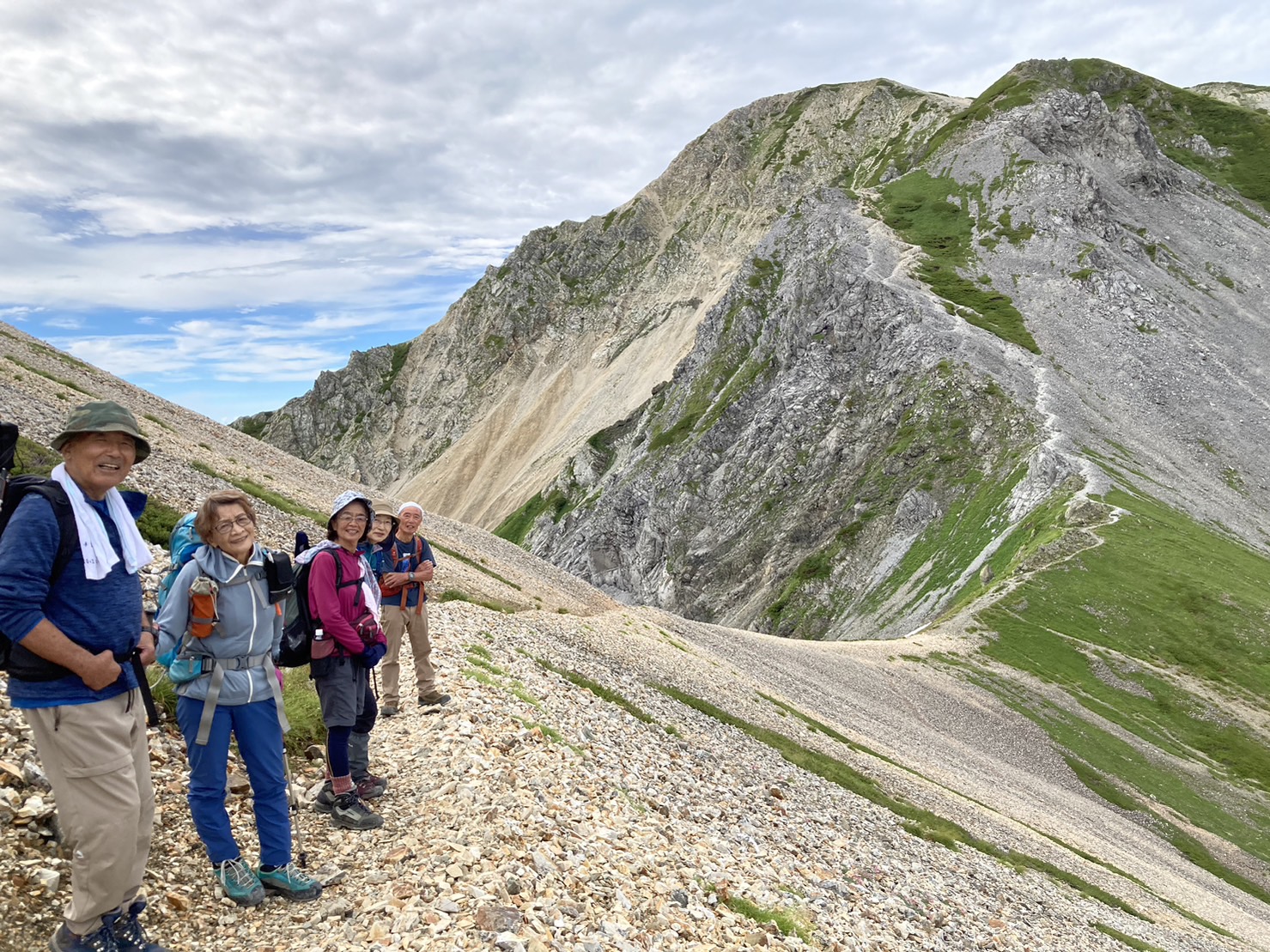 白馬岳までの長丁場、ガレ&ザレ&クサリの緊張の下りも助けられ、励まされて何とか全員で完踏できました。参加者の皆さん、感謝です。ありがとうございました。