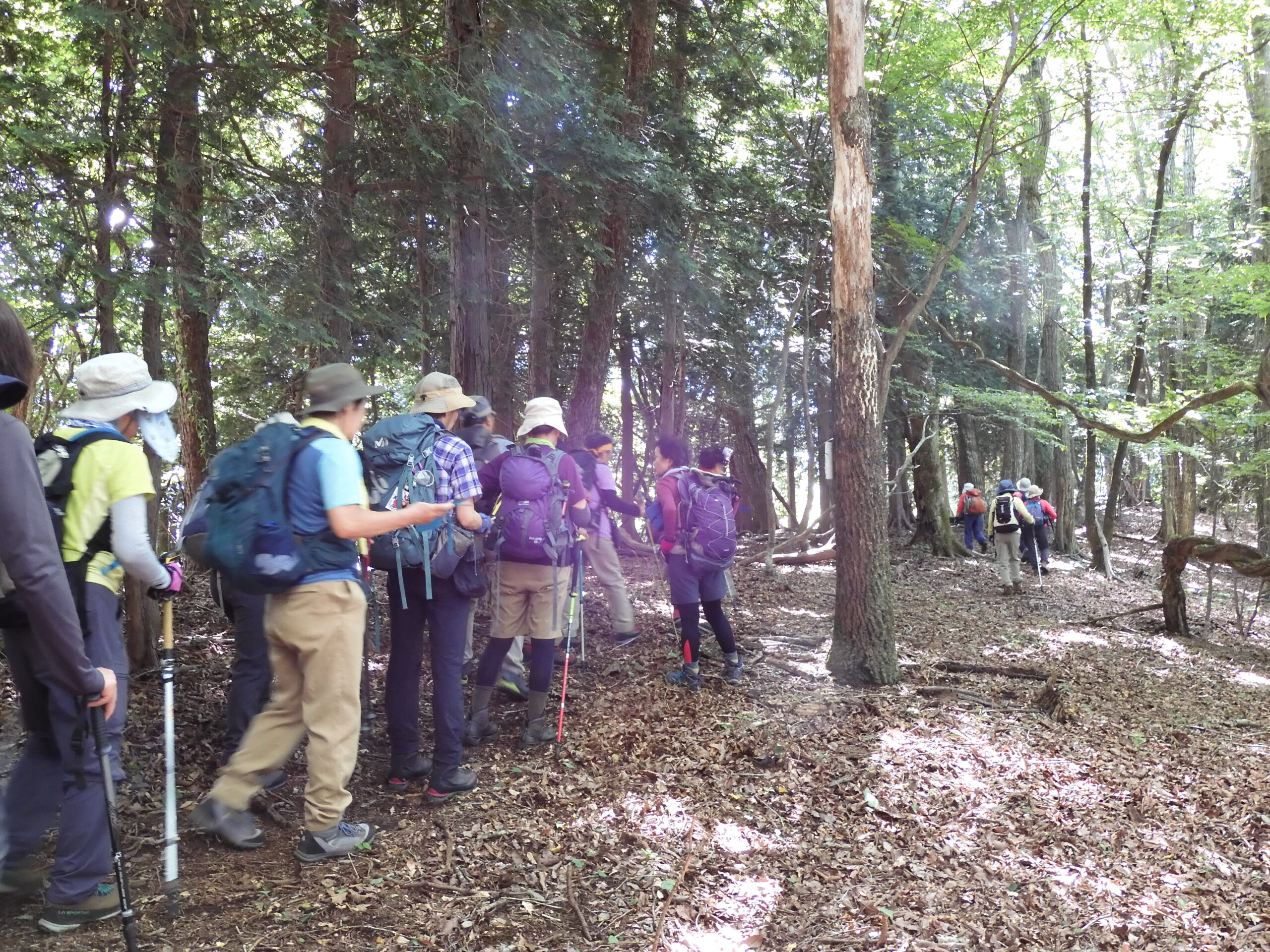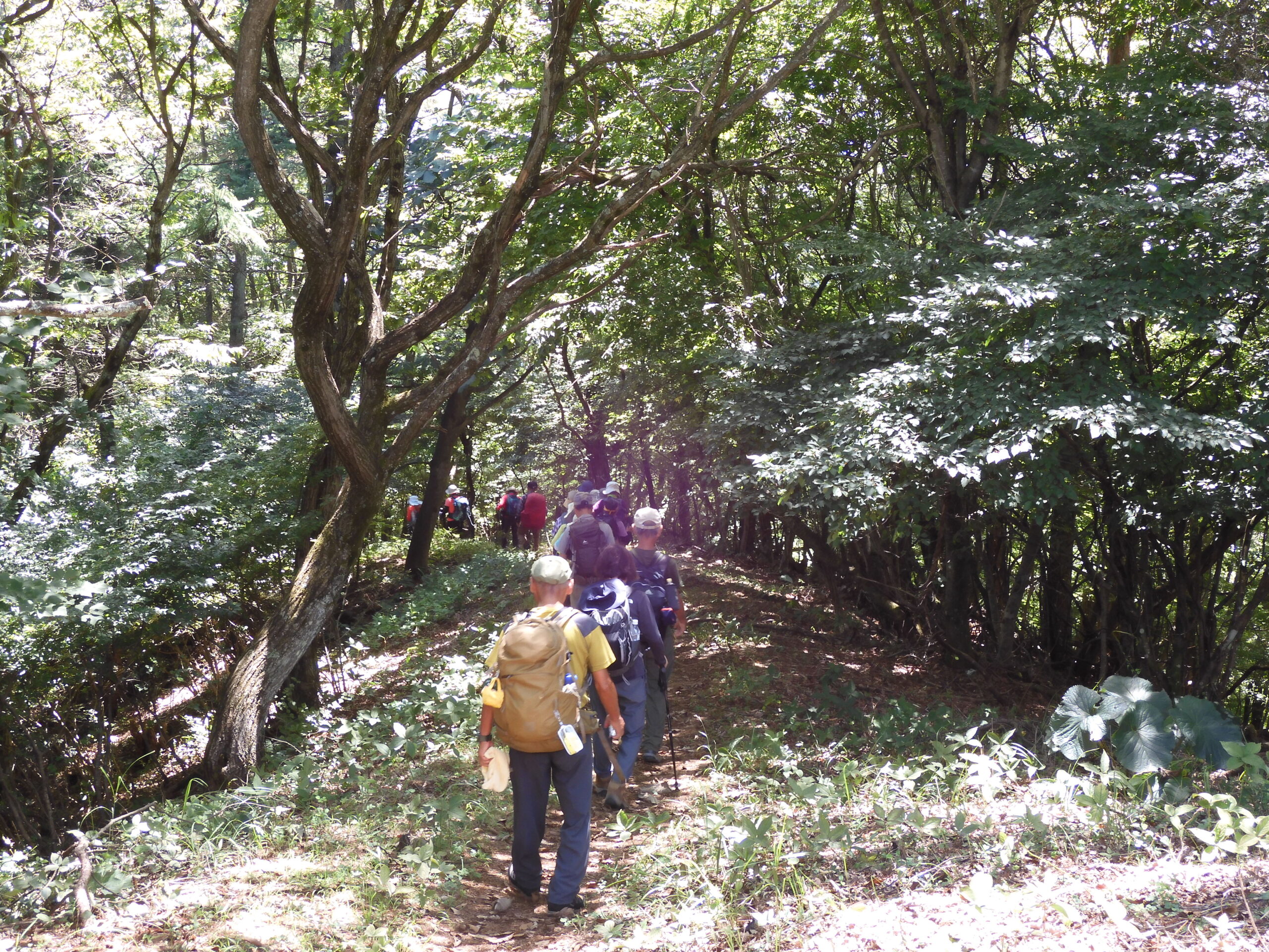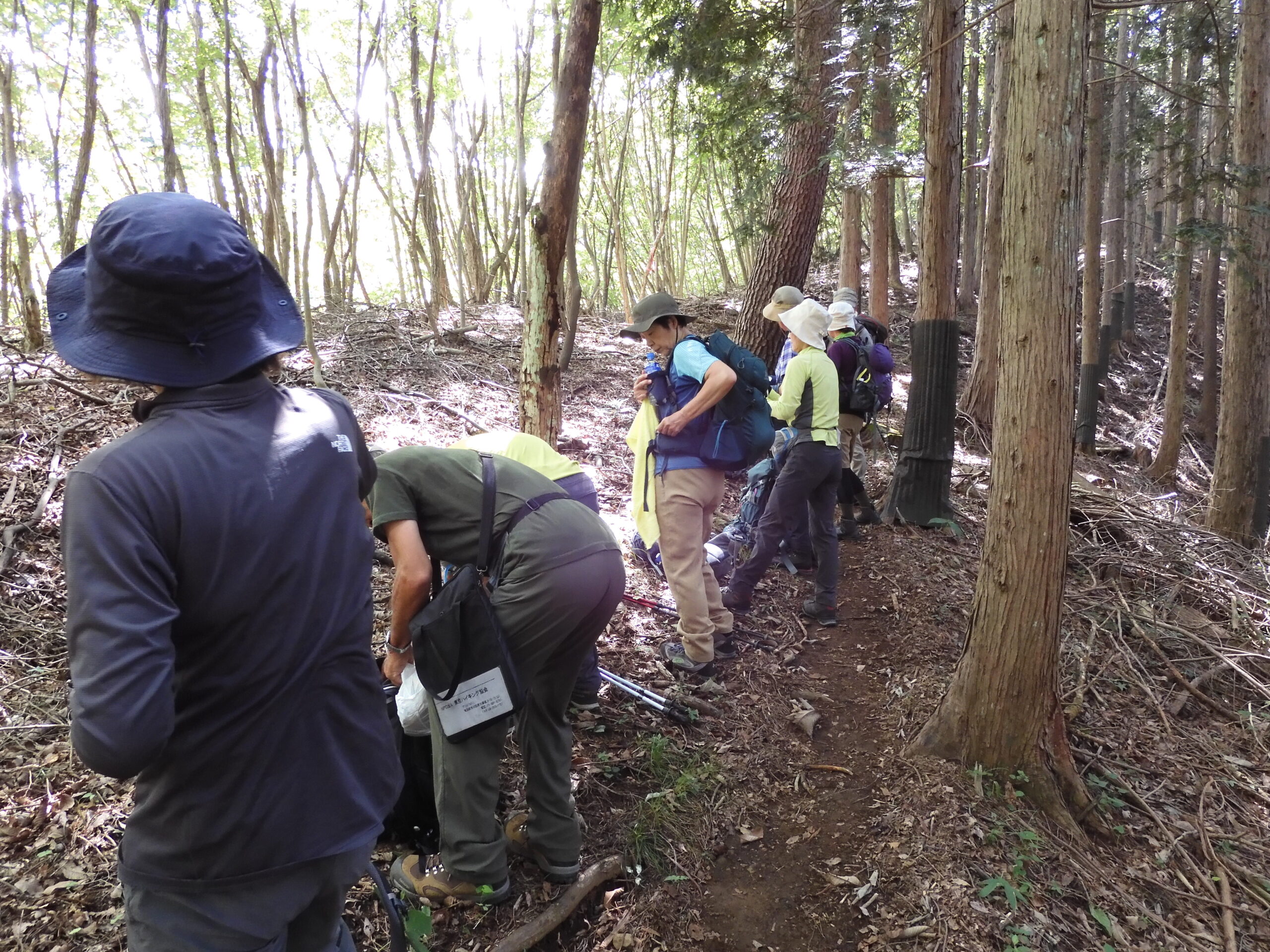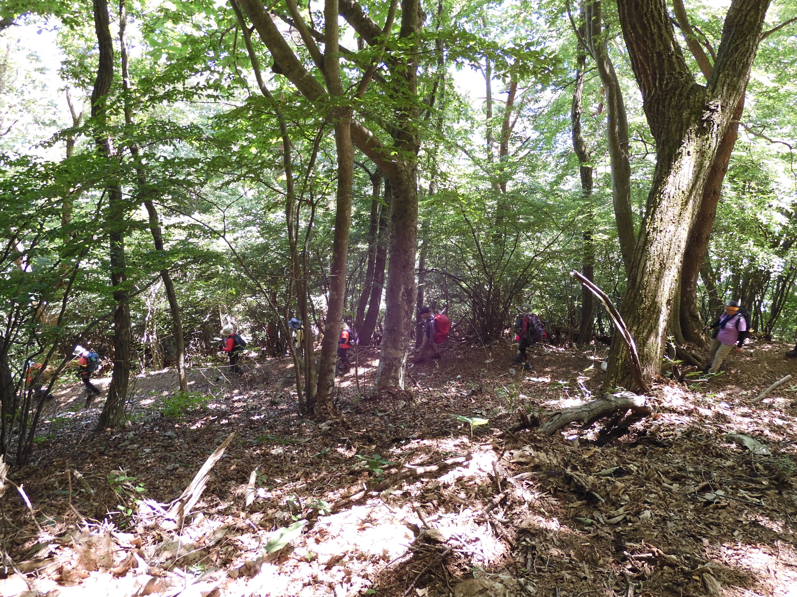 浅川でバスを降りて峠までは汗をかいたが稜線に出てからは樹林帯の中、時折吹く涼風で心地よく歩けました。下山して四方津駅までタクシーを使わず全員暑い中、小まめに休憩をとり水分補給しながら頑張りました。皆様の体力と根性に感謝!暑い中参加頂き有り難うございます。