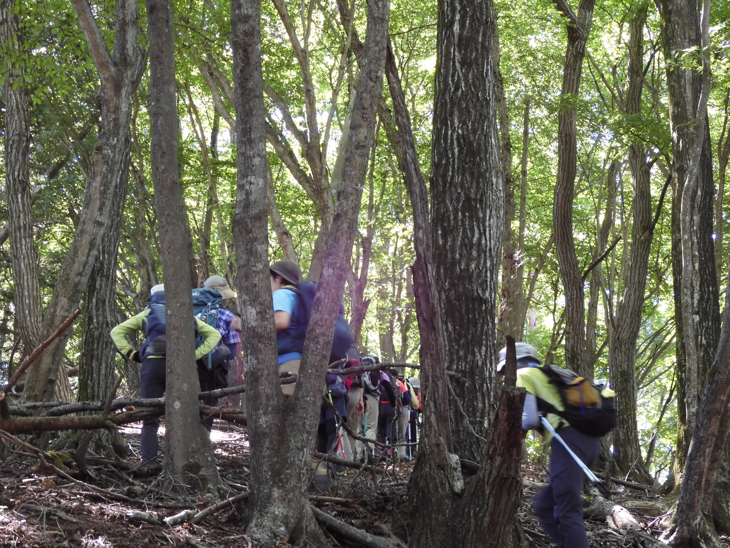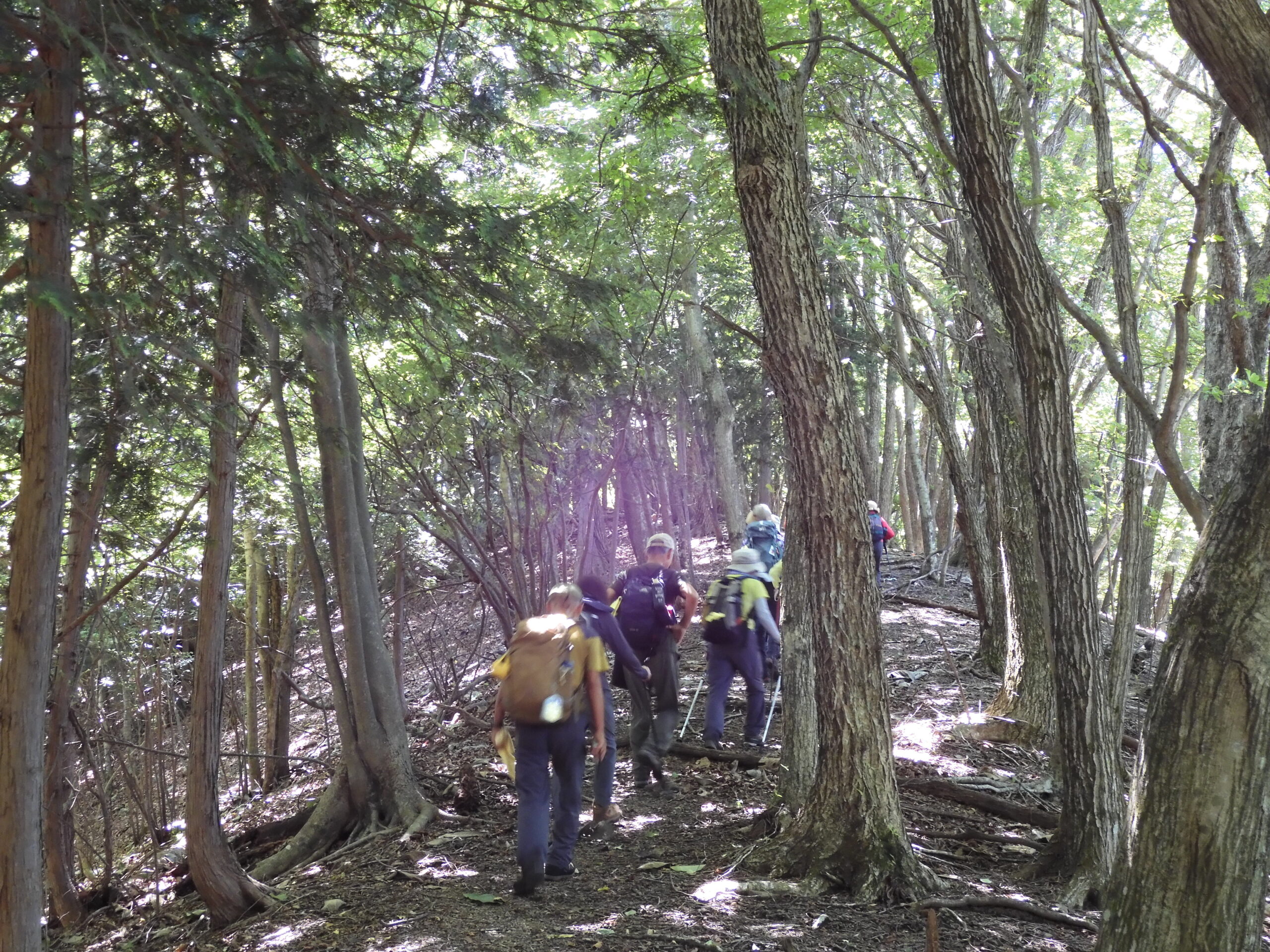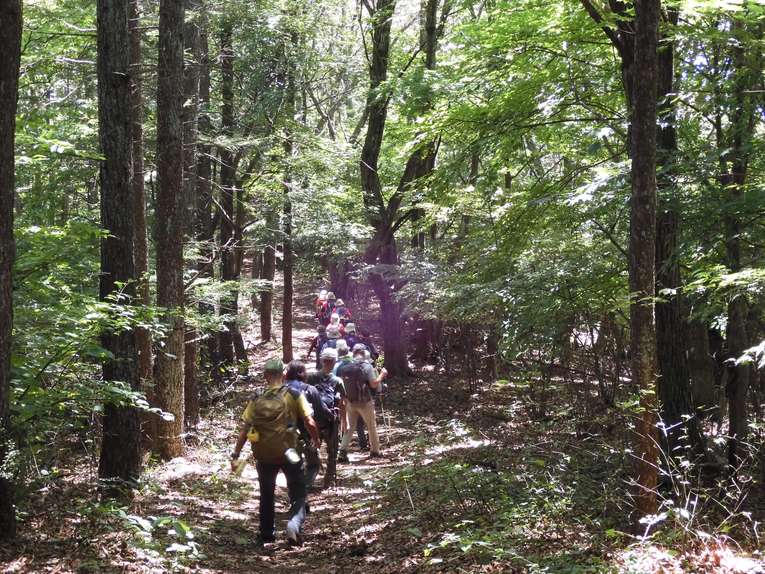 浅川でバスを降りて峠までは汗をかいたが稜線に出てからは樹林帯の中、時折吹く涼風で心地よく歩けました。下山して四方津駅までタクシーを使わず全員暑い中、小まめに休憩をとり水分補給しながら頑張りました。皆様の体力と根性に感謝!暑い中参加頂き有り難うございます。