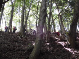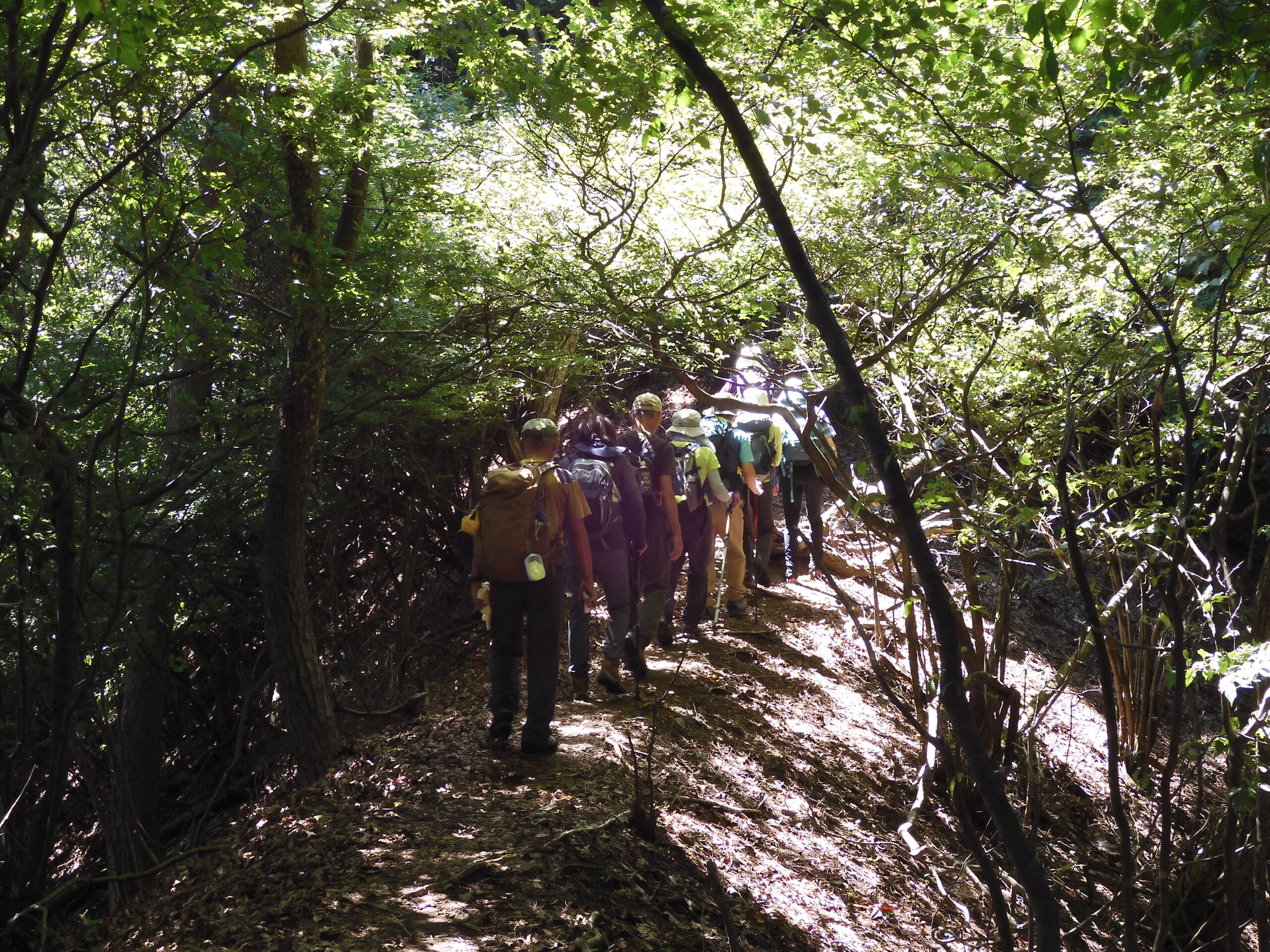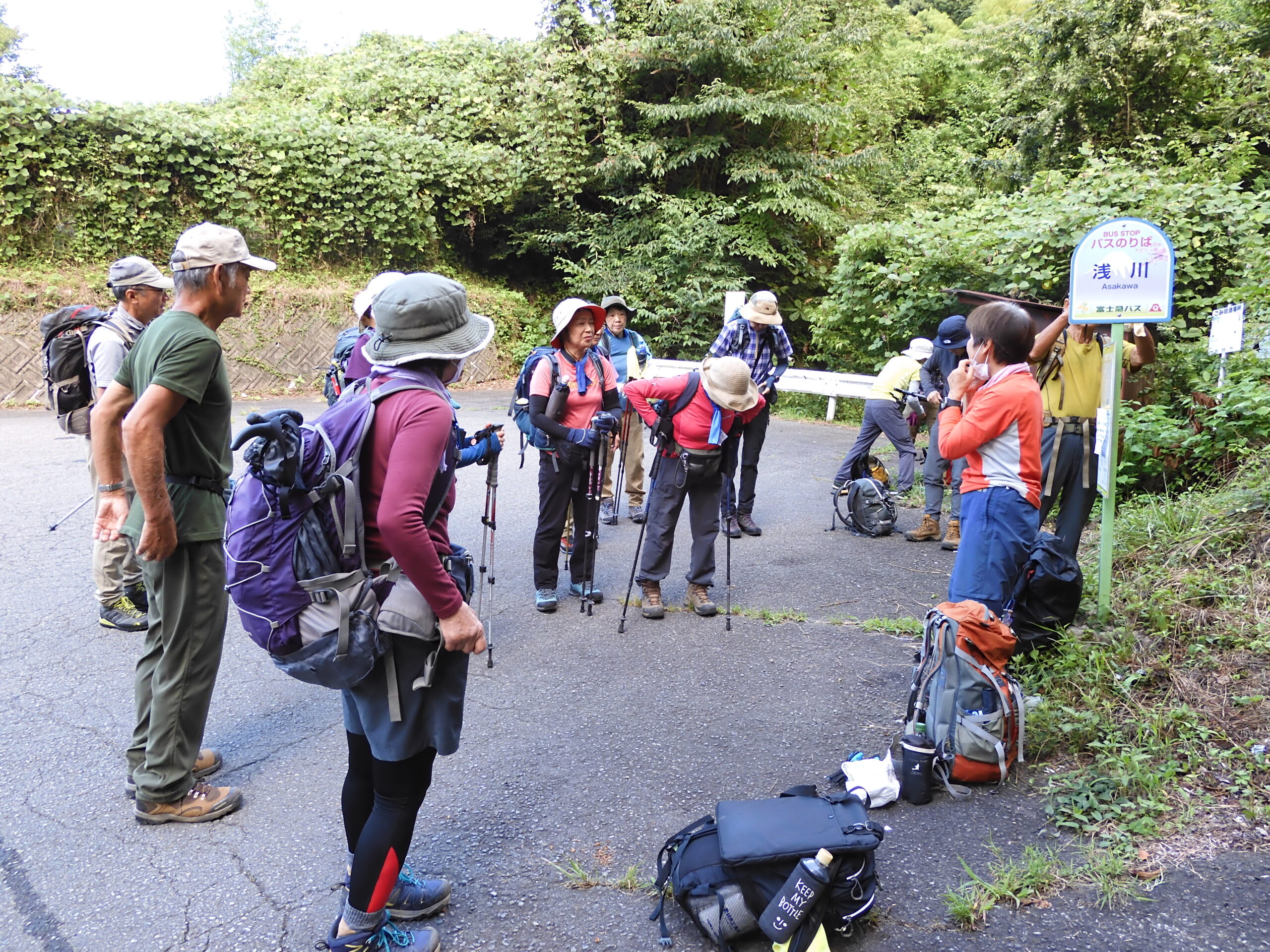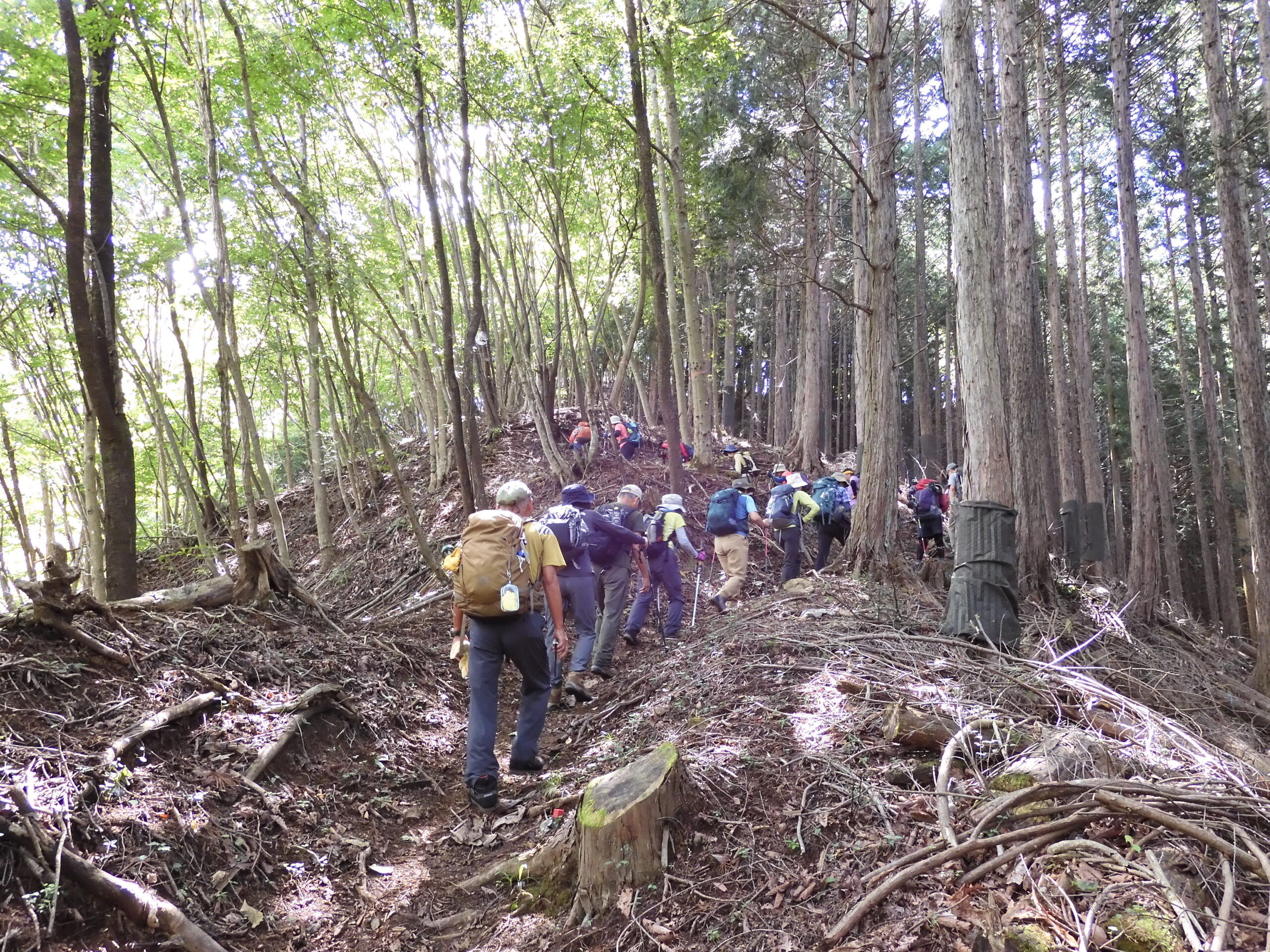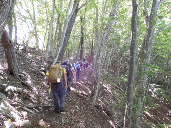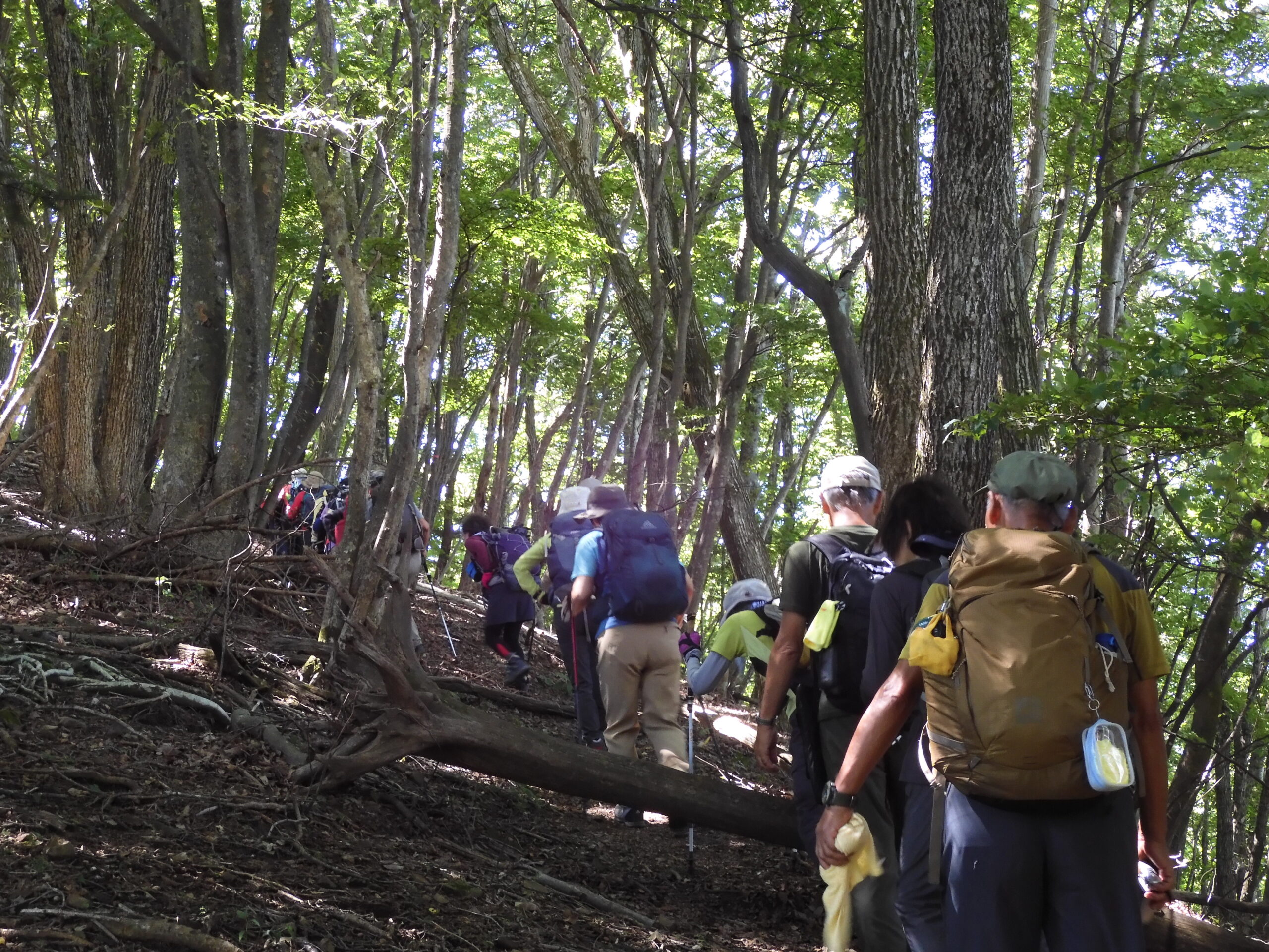 浅川でバスを降りて峠までは汗をかいたが稜線に出てからは樹林帯の中、時折吹く涼風で心地よく歩けました。下山して四方津駅までタクシーを使わず全員暑い中、小まめに休憩をとり水分補給しながら頑張りました。皆様の体力と根性に感謝!暑い中参加頂き有り難うございます。