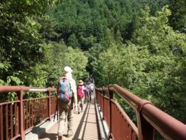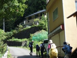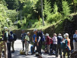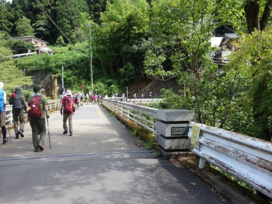 泉沢橋を渡り37名の大人数で登山口に向かう