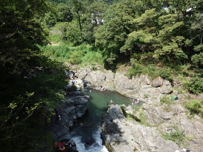 秋川の橋を渡り十里木のバス停近し 川遊びが羨ましい、飛び込みたいの声も