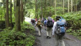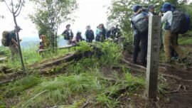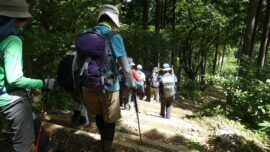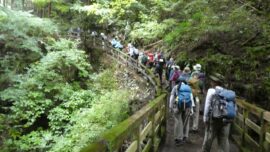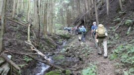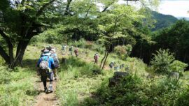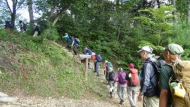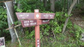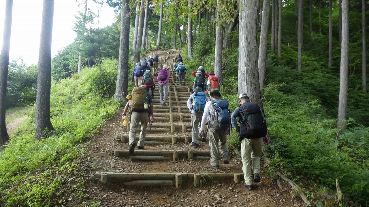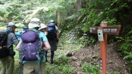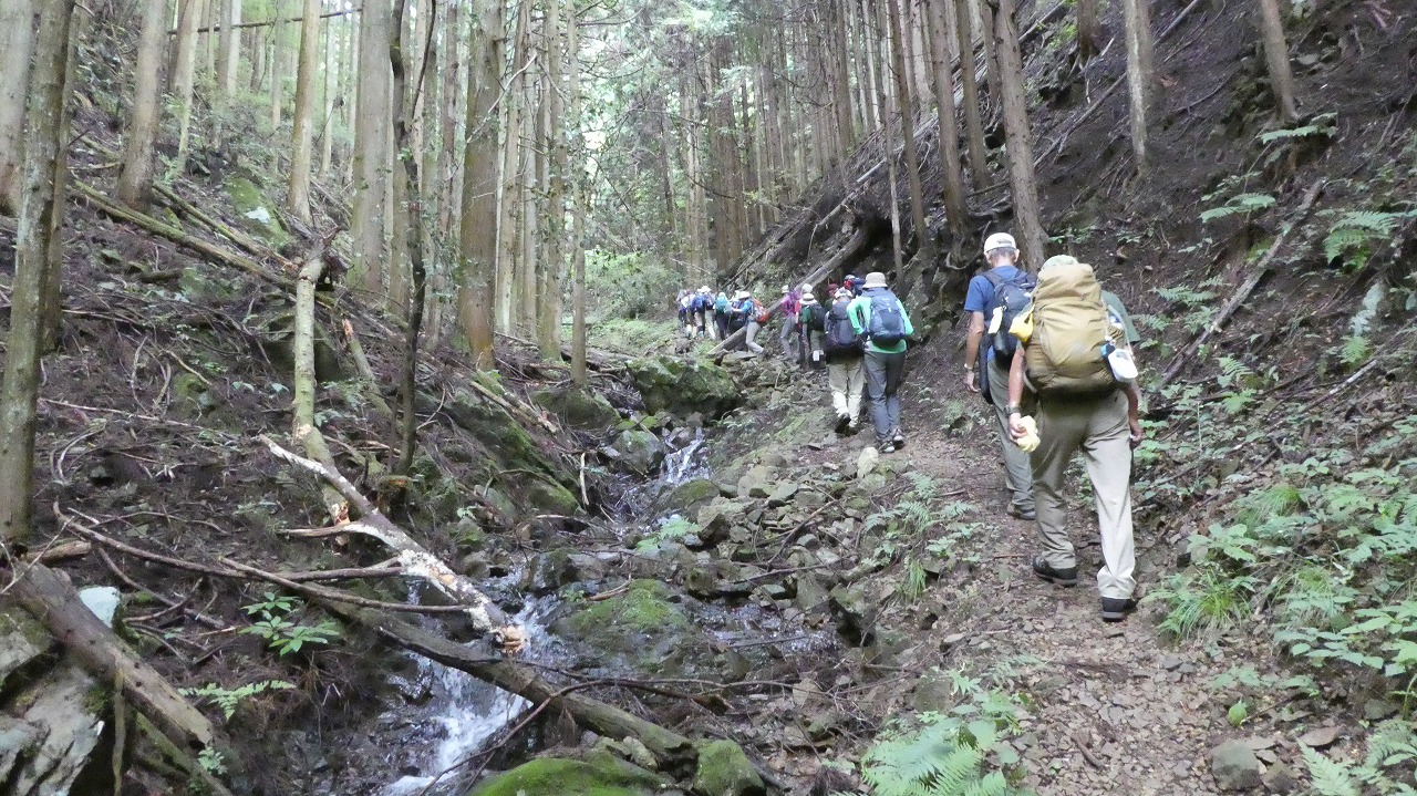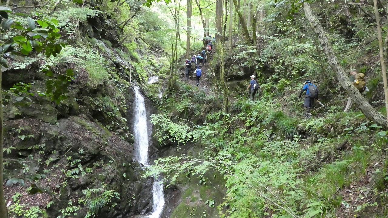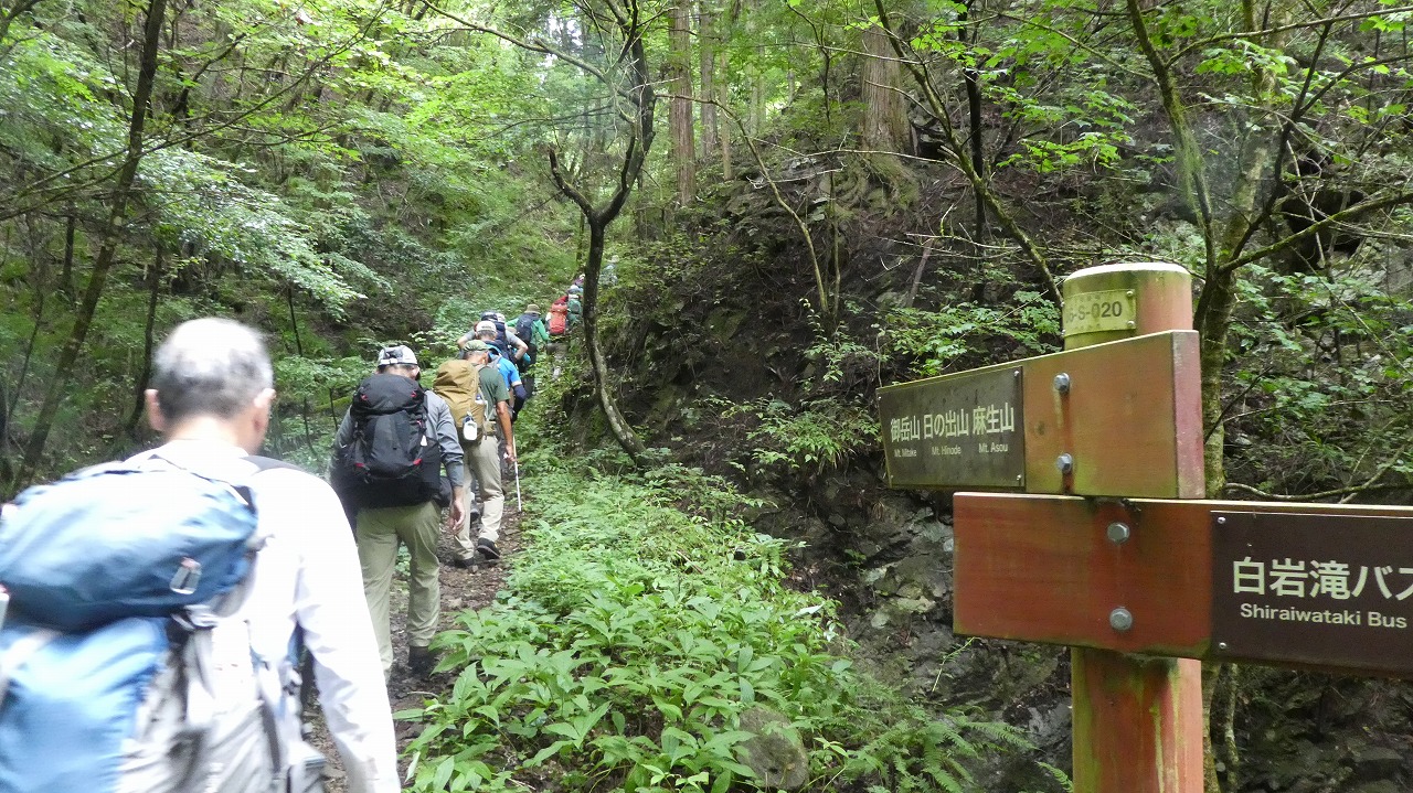 「例年8月の山行原稿提出〆切日が近付くと頭が痛い。夏山での大出費の後は財布に優しい近場がいい。高目の山へ冷房の効いた電車とバスを乗り継いで向かえば涼しかろう、と決めたのが今回の日の出山。そうして一週間前に下見歩きに行ってみればやっぱり暑い!いっぱいみえたら大変そうなので登りを滝にからめるコースに変更する。おかげで山行当日は気温もいくらか涼しめとなり、ワイワイと楽しくゴールができた。