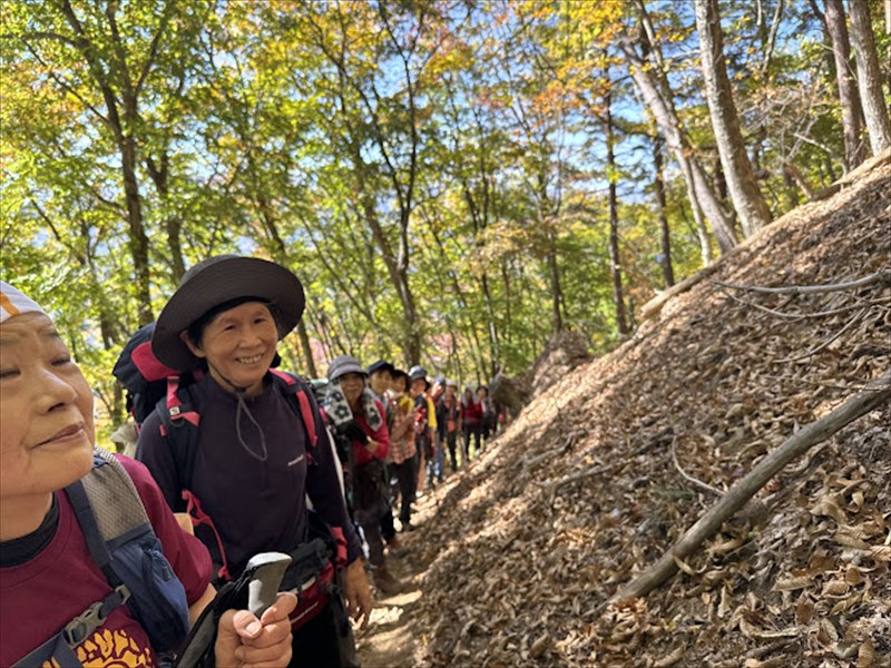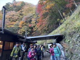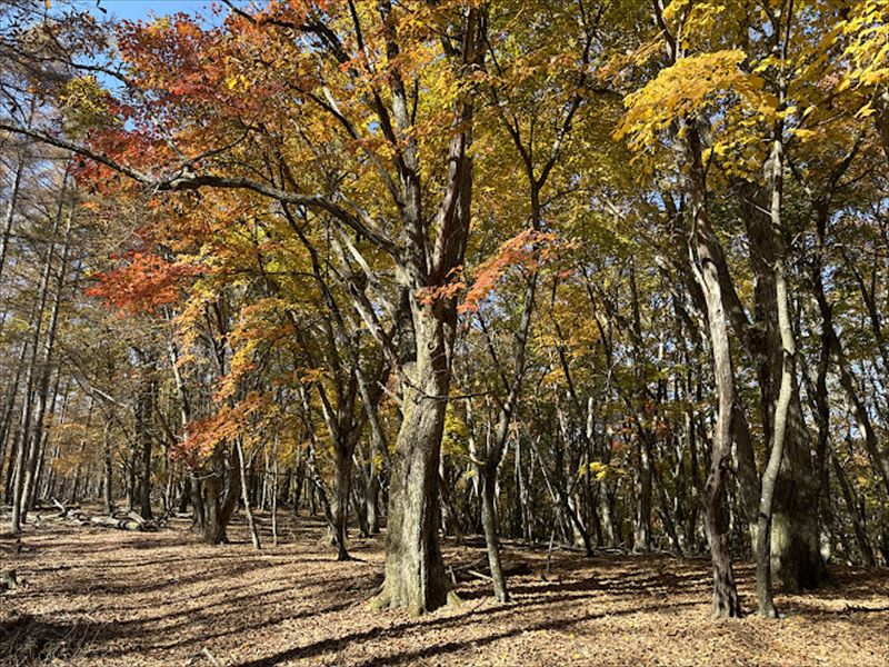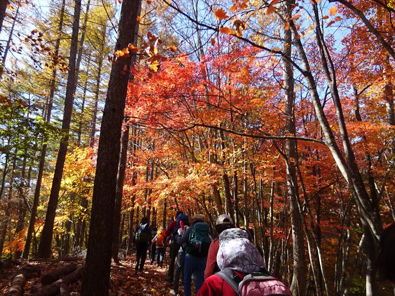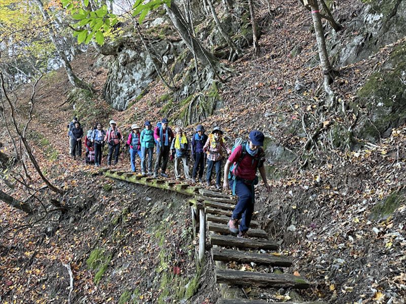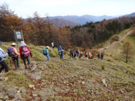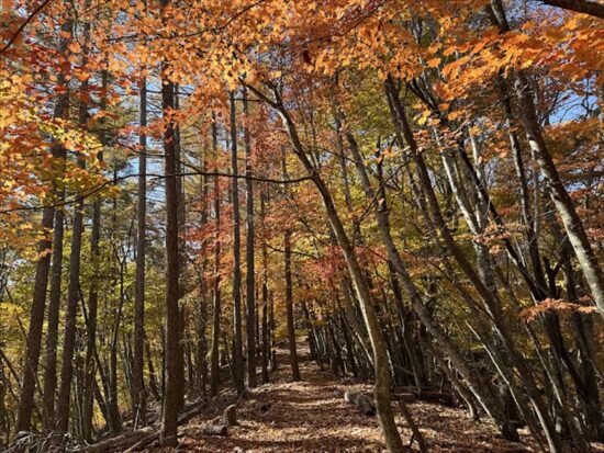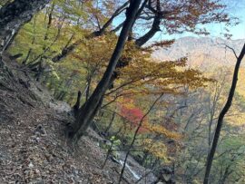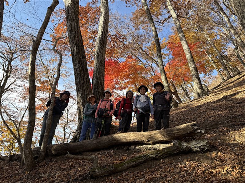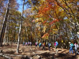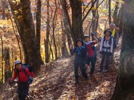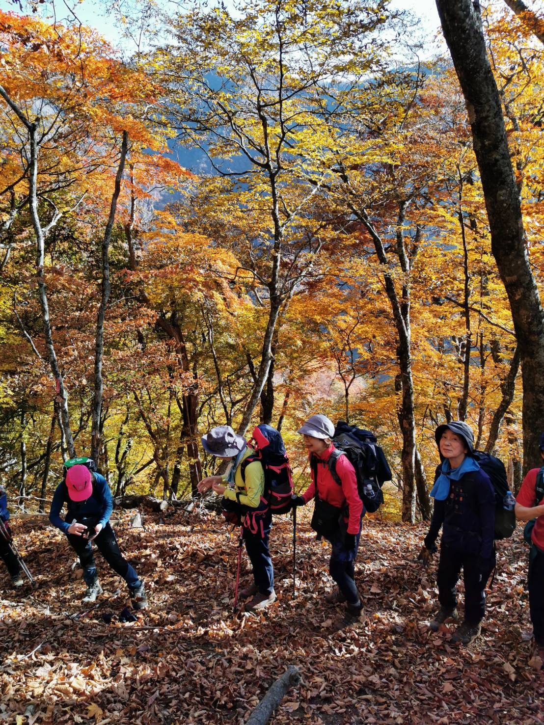 二日間とも、素晴らしいお天気に恵まれました。紅葉もちょうど見頃で、素晴らしい景色を観ながら歩くことができ、感動の連続で、ただただ感謝の念を抱く山行になりました。健康に過ごせ、一緒に歩いてくださる方々がいてありがたいです。協力してくださったリーダー、参加者の方々のおかげで無事に山行を終えることができました。ありがとうございました。